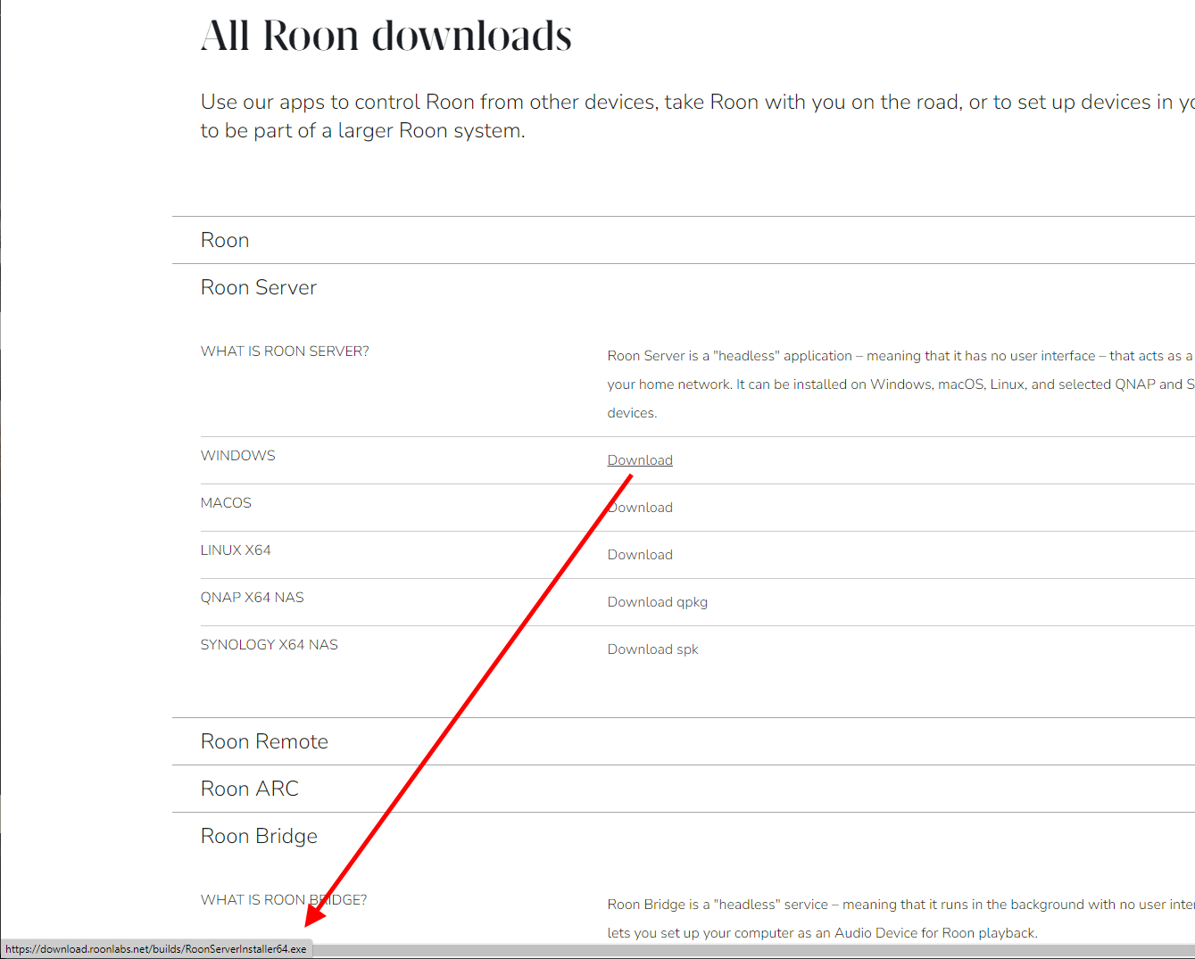 on your mainpage the link for downloading the roonserver windows gets to roonbridge.