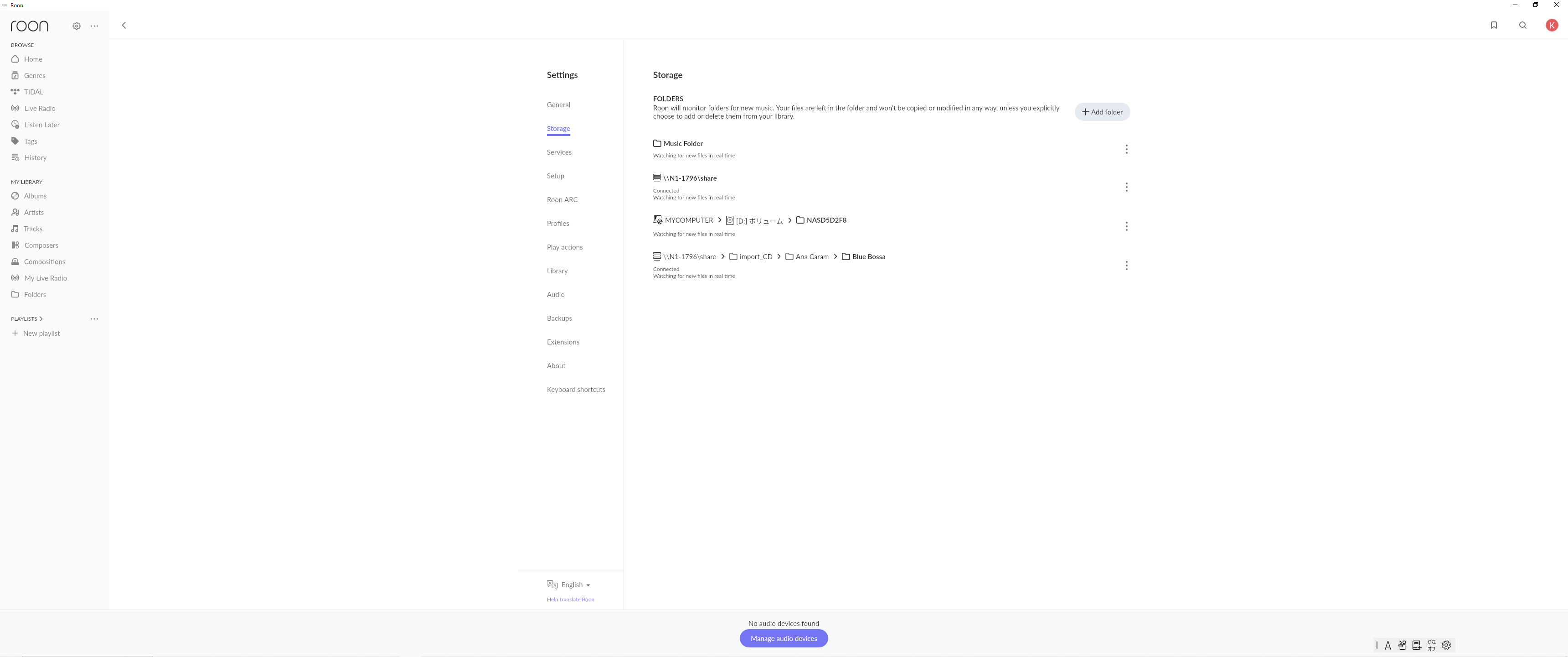 In the lower part of ROON appli, it is described " No audio devices found. Manage audio devices " Though I clicked Manage audio devices, no respose at all.