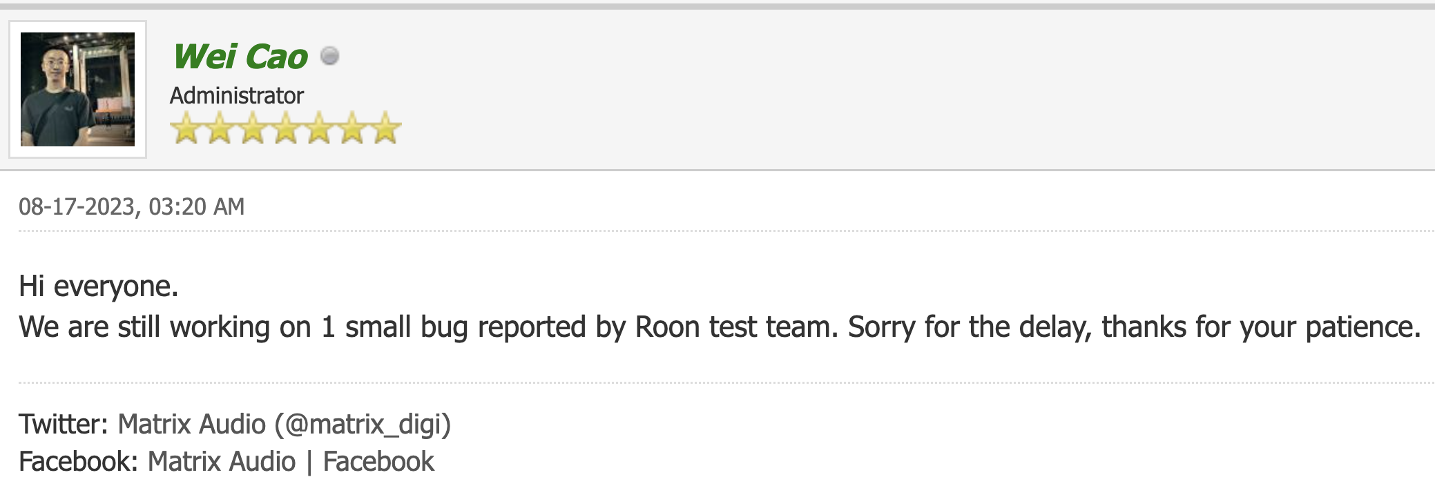 I can’t understand what might be holding up Roon certification. Matrix has many other models that are certified and both companies must have a lot experience and expertise working together. I hope Matrix is working to address the bugs Roon supposedly pointed out and that we can see Roon certification soon.