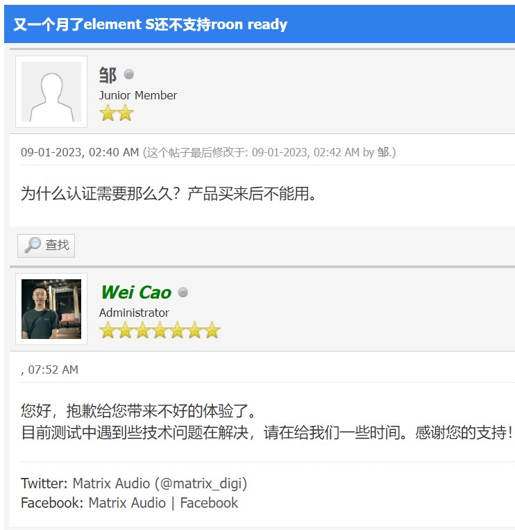 PS Audio makes a similar product called AirLens to Element S. According to PSA’s CEO, they are not selling it until AirLens is Roon Certified. (There is a discussion about this unreleased streamer on PS Audio’s forum with over 4000 posts.) Had MA done the same and waited (to sell), both embarrassment to the manufacturer and frustration to the customers could have been avoided.