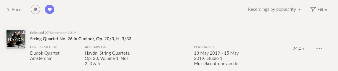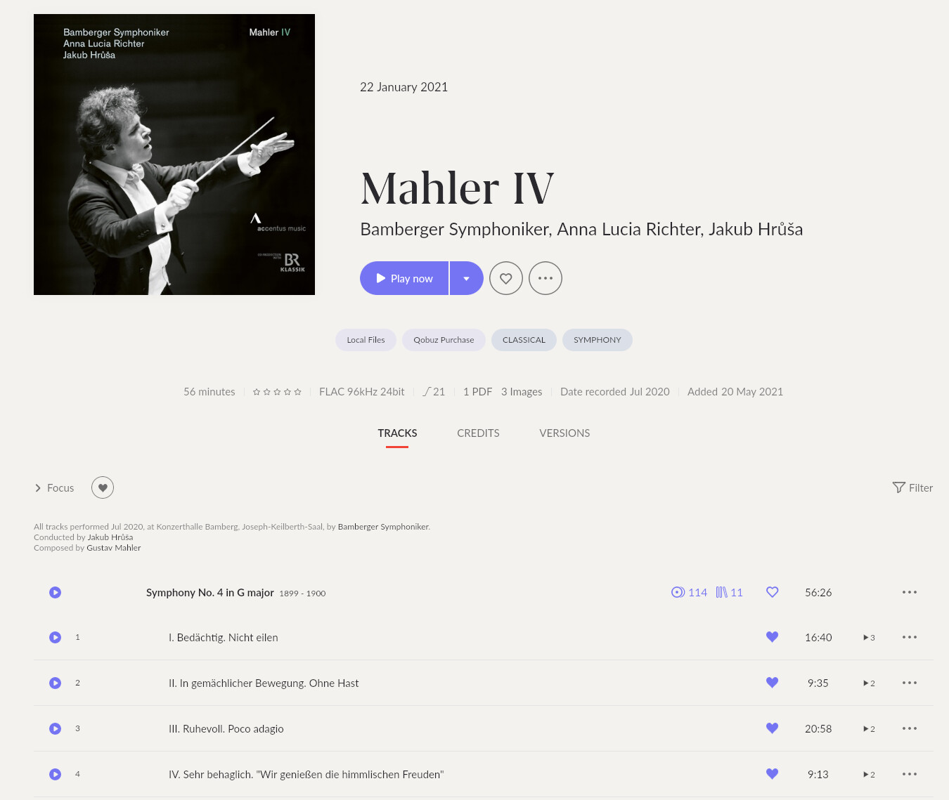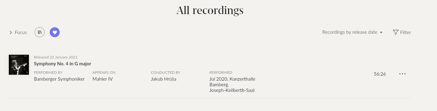 So, for example, here, I have favourited this performance of Mahler’s 4th by marking the tracks, but not the composition: