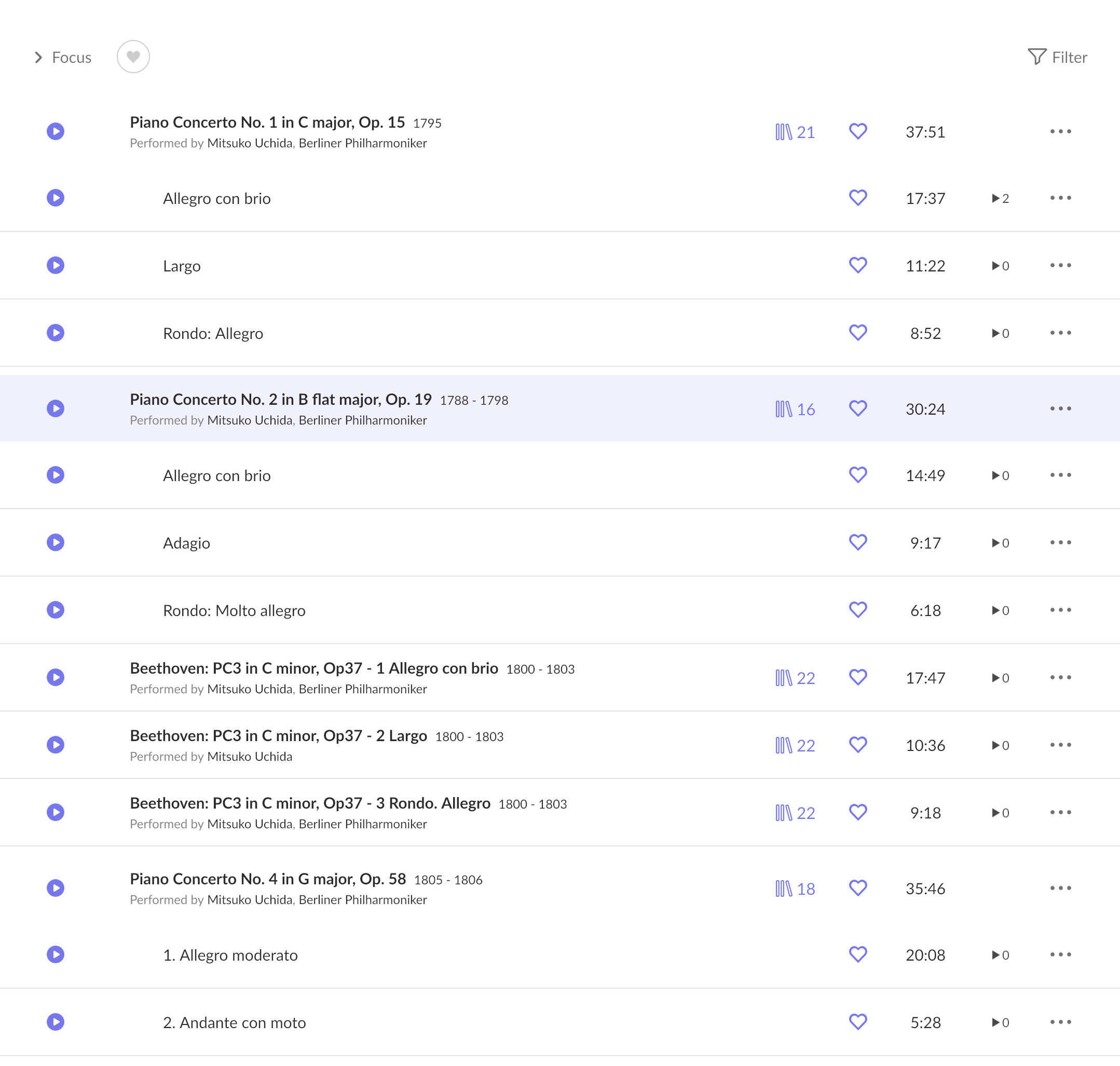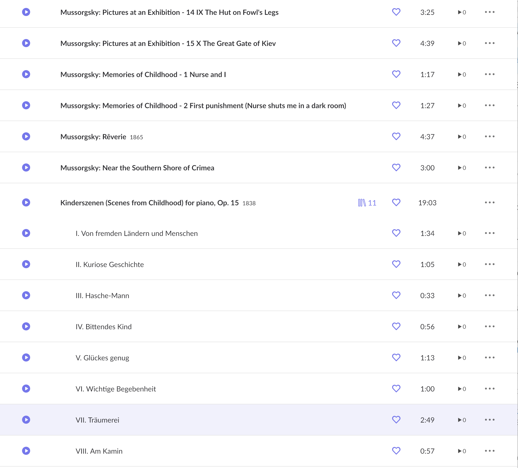 Edit: I just tested this, using Haydn’s Op. 20/3 string quartet as example… It works, marking only the first track or part of the work. It still can be selected on the Compositions page as ‘hearted’ or liked… But it will identify the hearted part, and not the work as such. If all movements are hearted, though, the work as such is recognized as ‘hearted’ or liked…