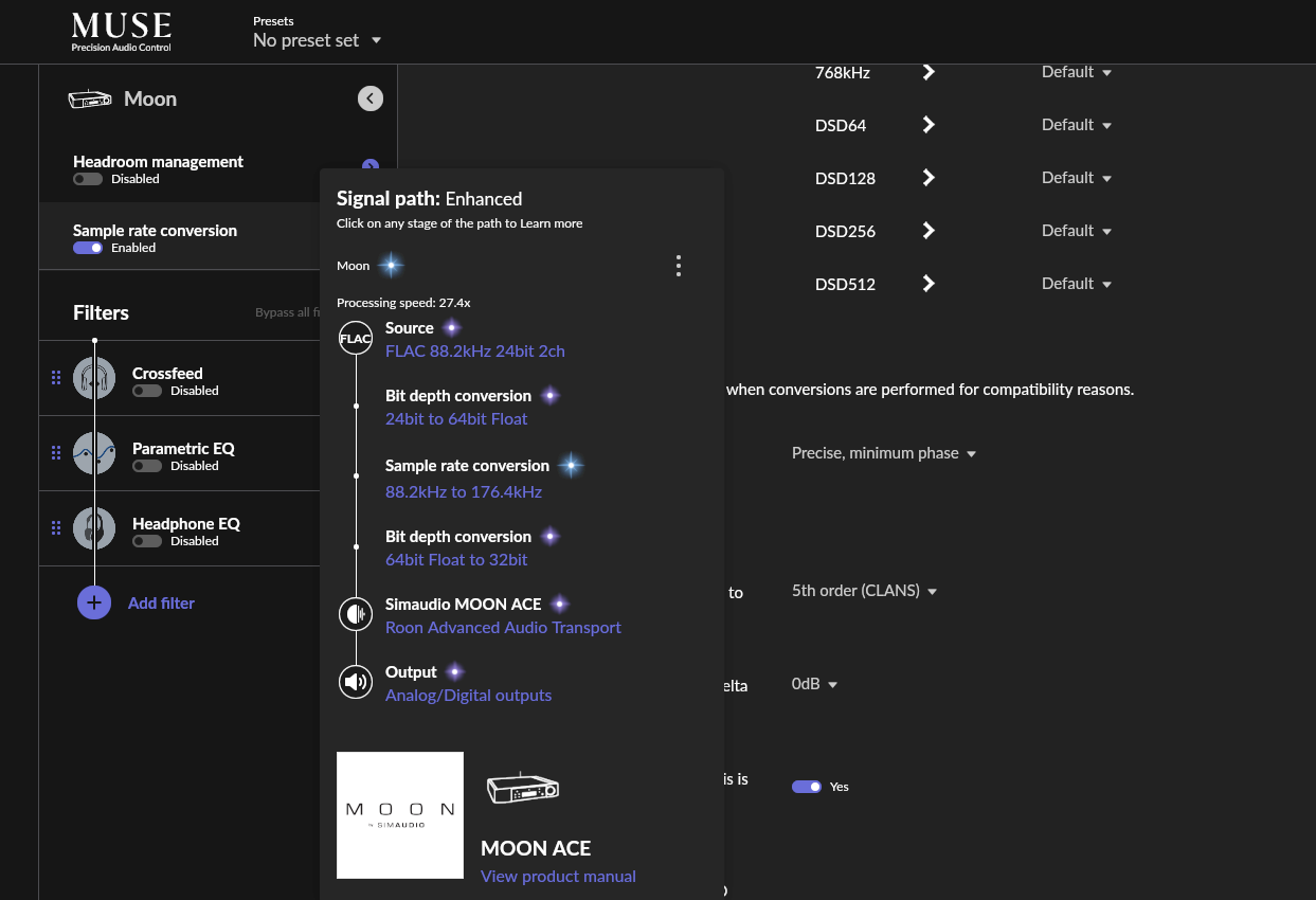 The Moon Ace Mind2 played it just fine native and custom to 176.4 with the display on the Moon showing 176.4 along with Roon signal path.