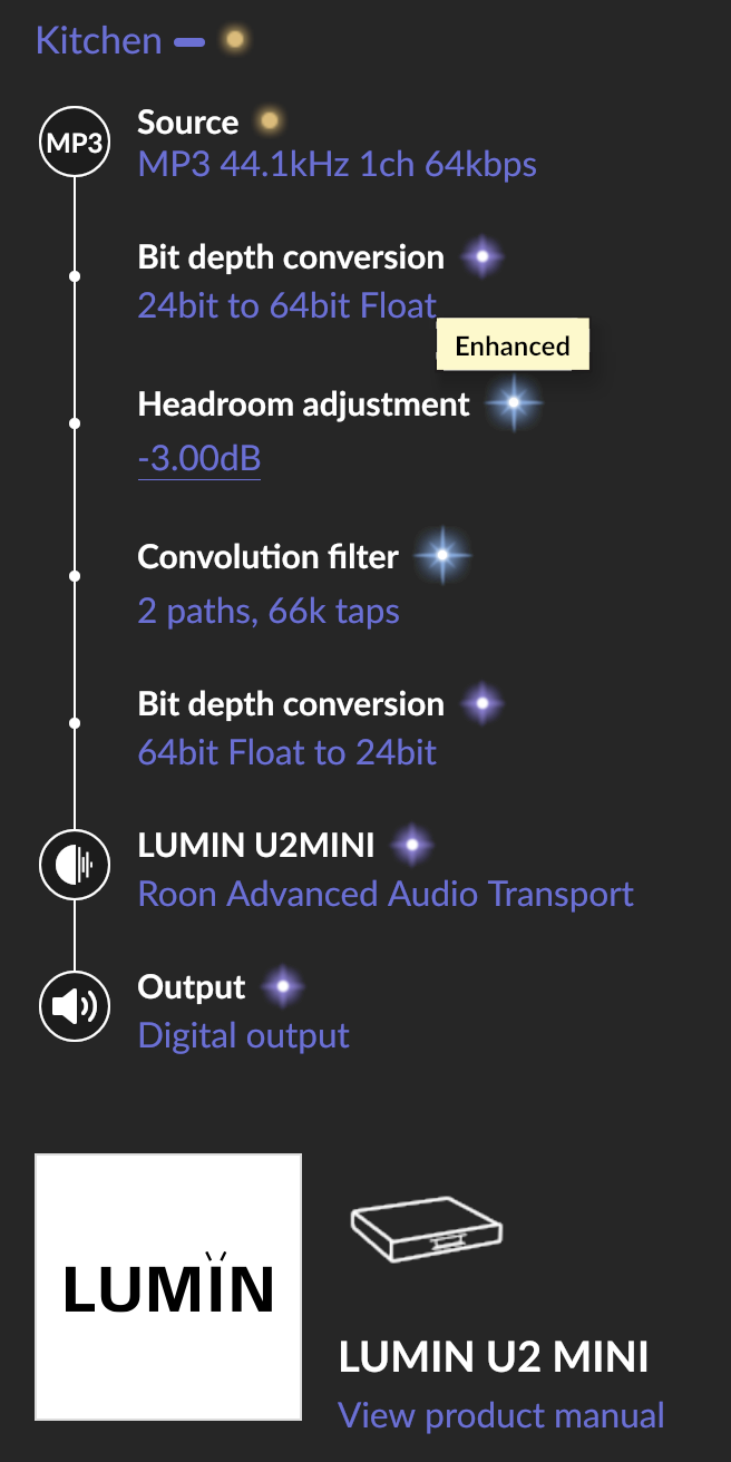 For this zone, the mono source file gets mapped to stereo before sending to the Lumin U2 Mini, and the sound plays as expected: