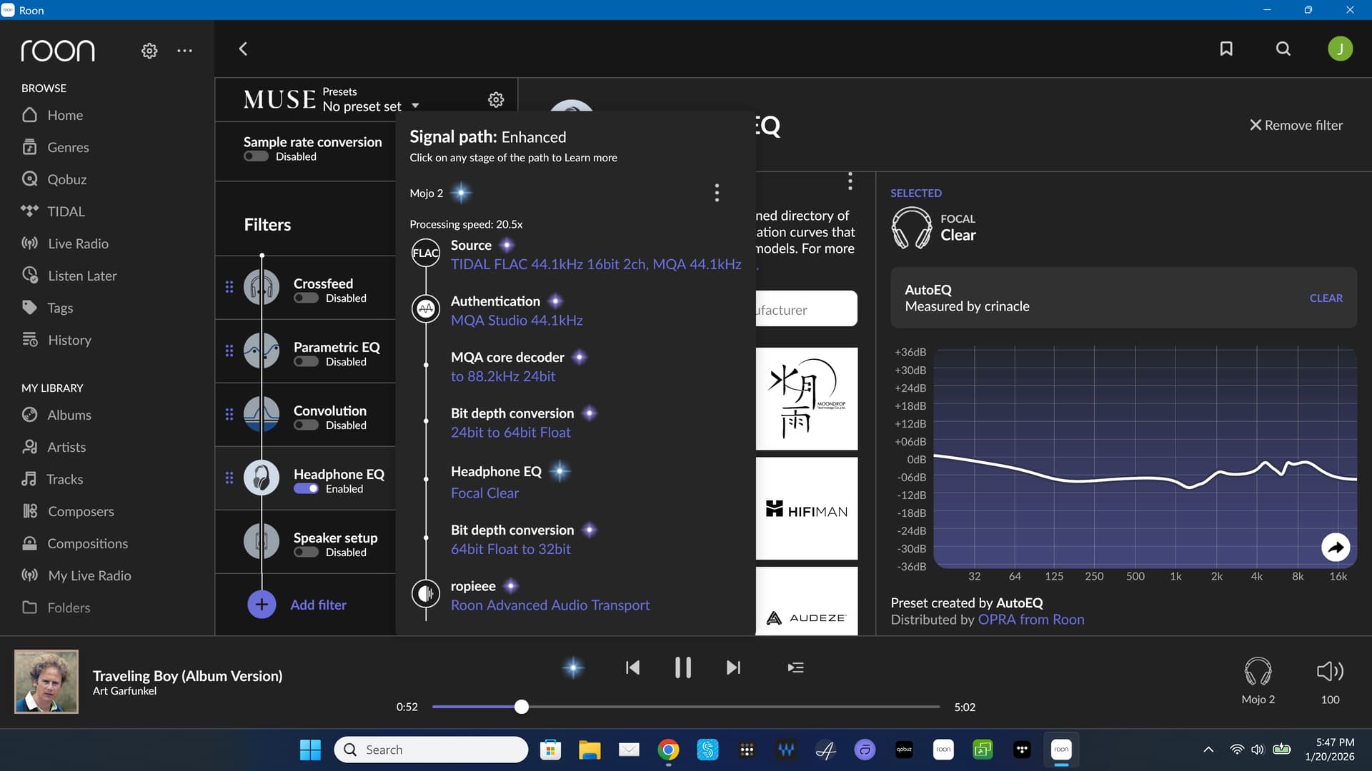 In my listening tests with a renderer-only MQA DAC, I didn’t notice a difference when combining with DSP and headphone EQ.