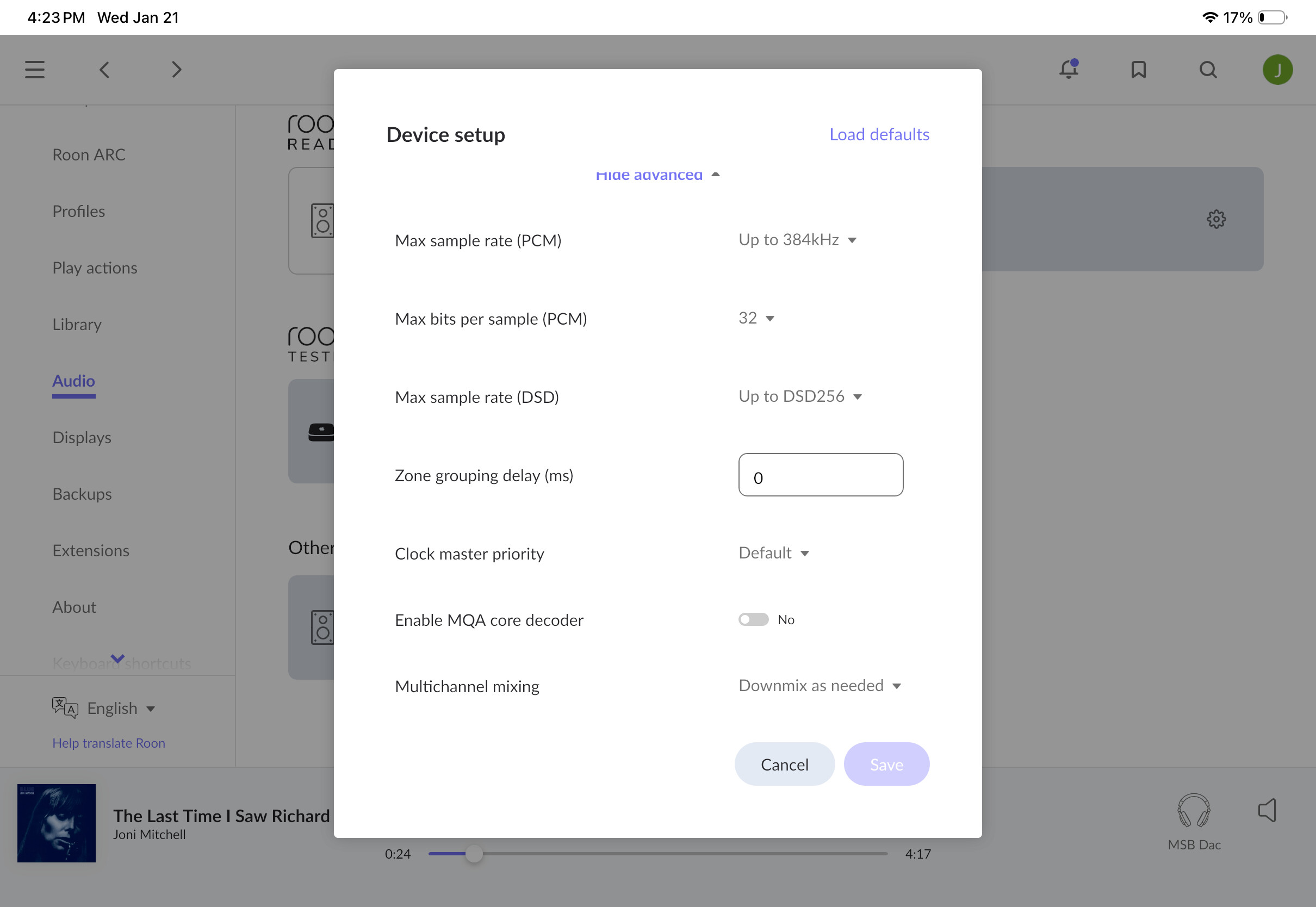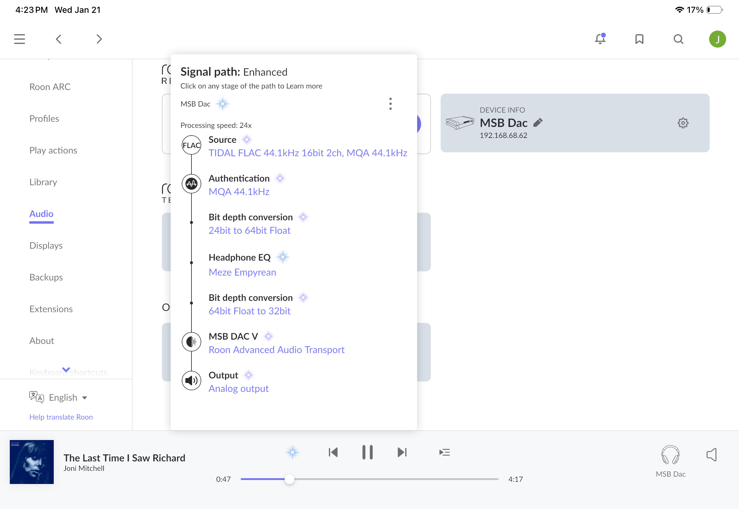 As far as Roon’s settings for the MSB zone, here’s a summary: