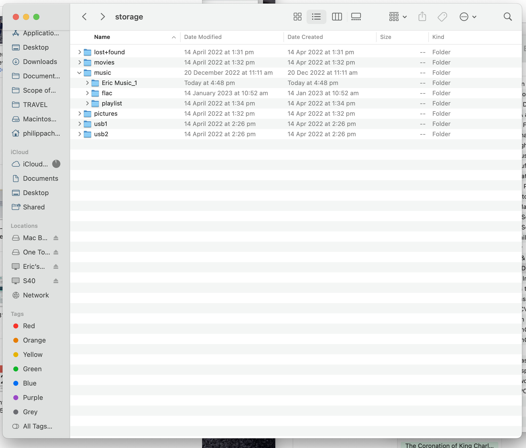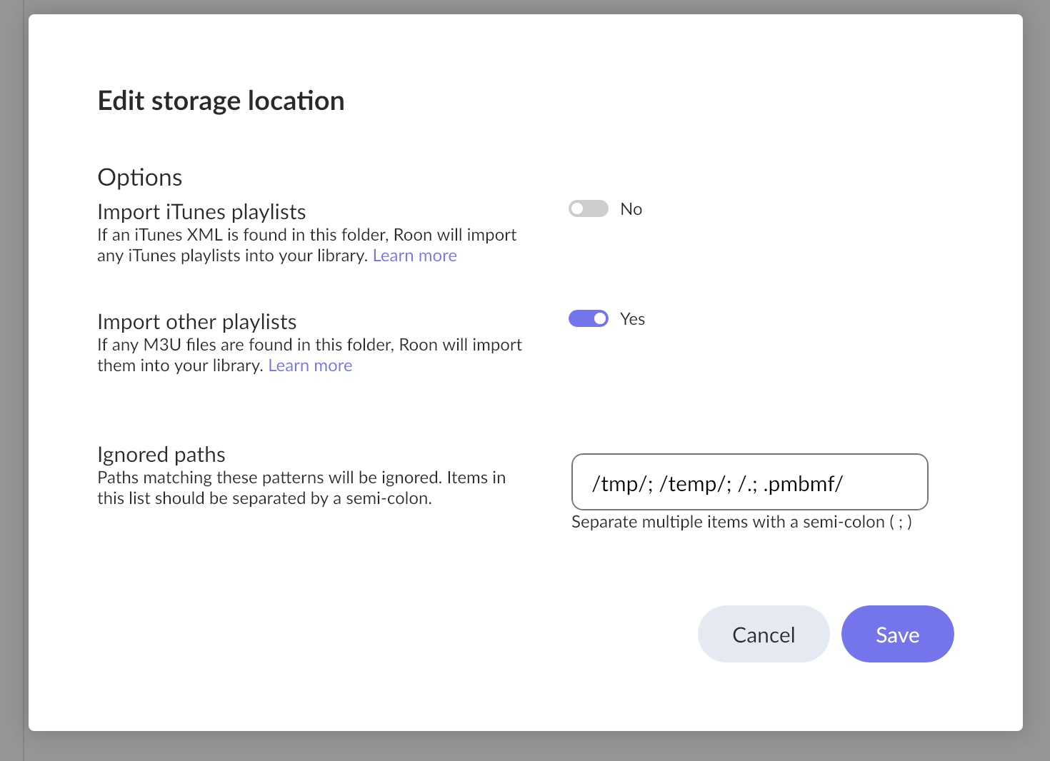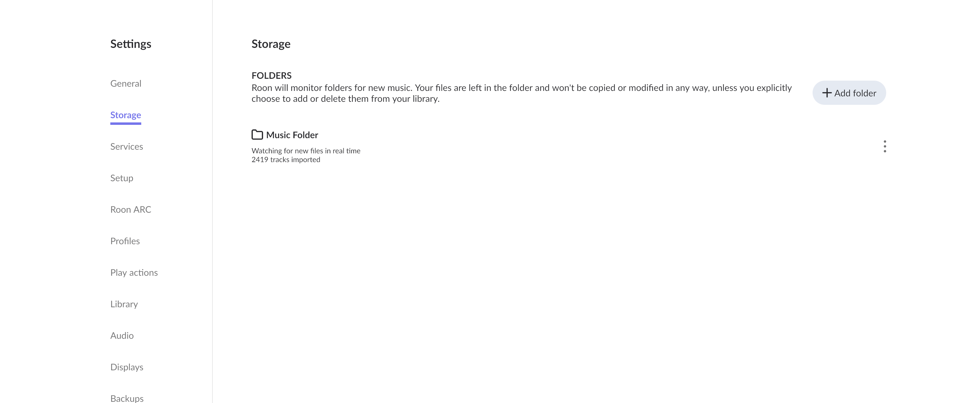 Below is a screenshot of the Roon settings window indicating the folder containing my music.