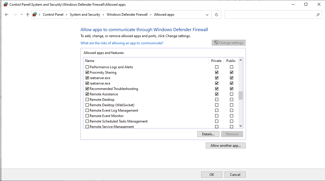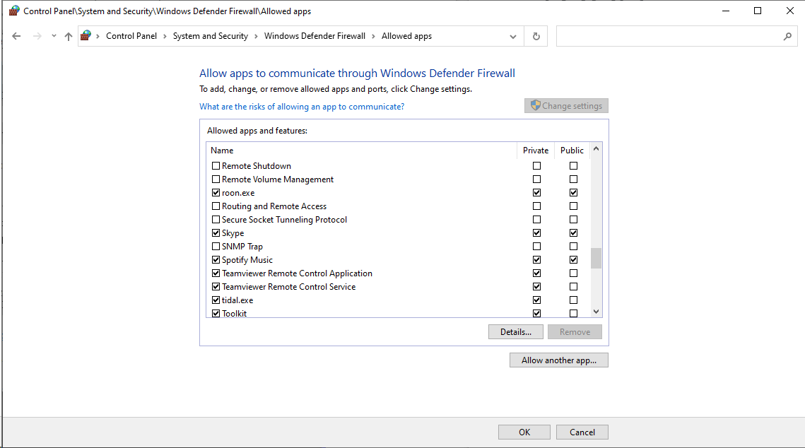 My Windows Firewall settings (I have uninstalled Avira, no other protection is on as per my knowledge):
