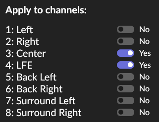 - Defines the output mask, or number of output channels / speakers