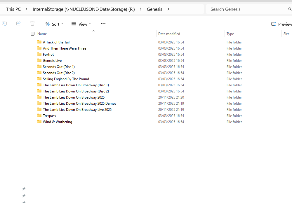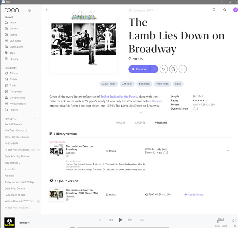Thanks for getting back to me. First of all they are very mainstream albums, but are variants remasters/remixes. The album is the Lamb Lies Down on Broadway. Here are two snapshots of the location on Nucleus One Storage: