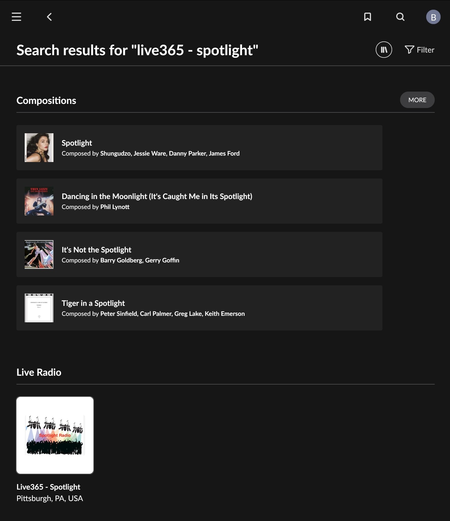 Live365 - Spotlight added.