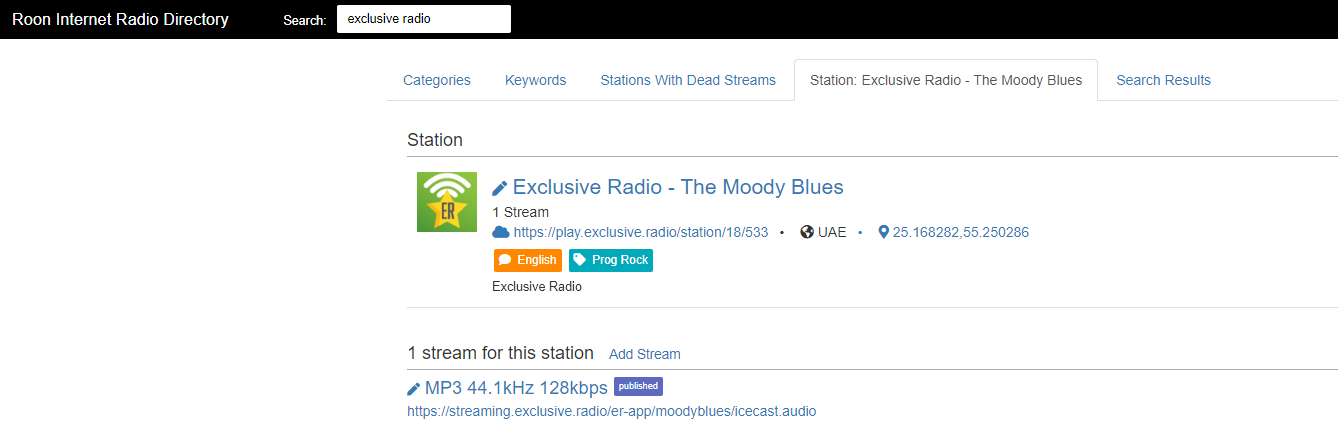 Stream URL for Moody Blues (no metadata detected on my side, not tested with Roon): https://streaming.exclusive.radio/er-app/moodyblues/icecast.audio