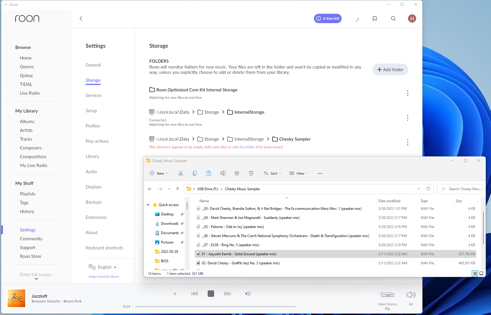 I first thought that the Music File SSD drive would just show up in the Roon App and you would just open that drive up create a new Music Storage folder and just start adding in your music files. I’m also not exactly sure where any of one’s downloaded files that have been transferred to the SSD are actually located/accessed in the Roon app when you are ready to play them?