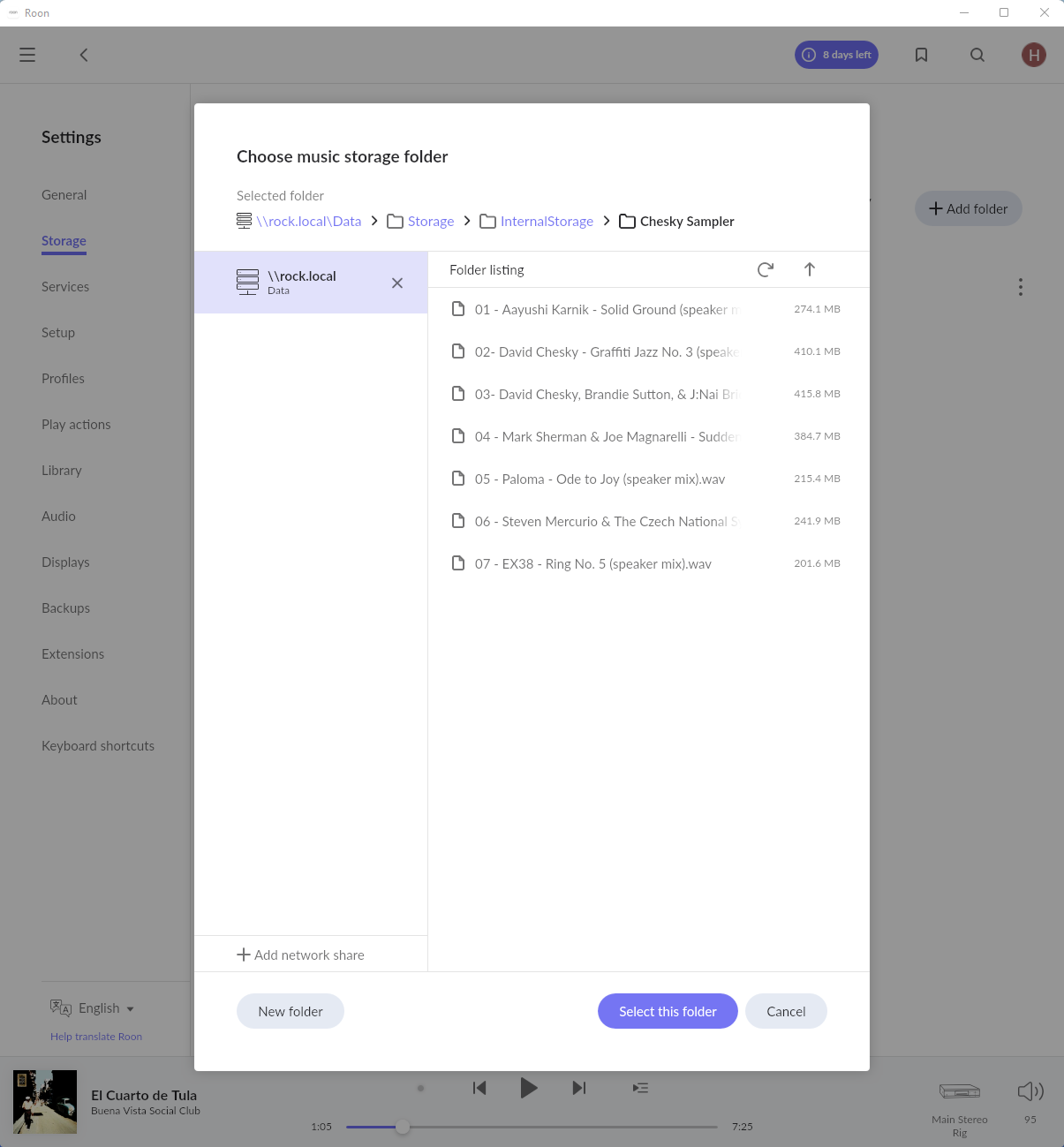I also then created a Chesky music sample folder but if I drag a file from a USB thumb drive and try to drop it into the Chesky folder Roon will ask me if I want to add music to the Internal Storage but then Roon will hang attempting to move the file and I’ll have to close it?