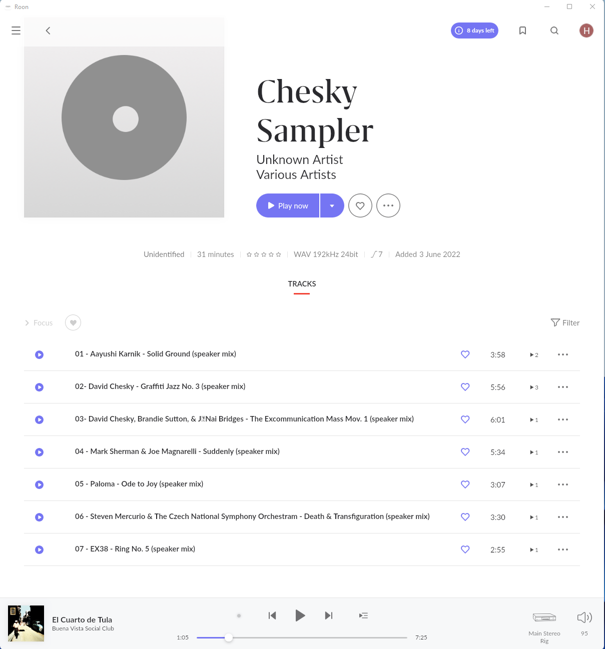 This download doesn’t include an album cover so Roon displays a generic image. You can add your own if you’d like. Copy a jpeg file into the folder, and give it the same name as the folder.