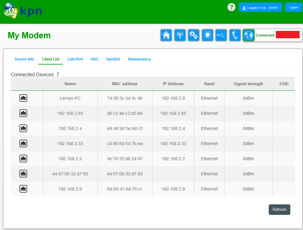 I’ve gone into my router’s settings and checked the list of connected the devices, which you can see here: