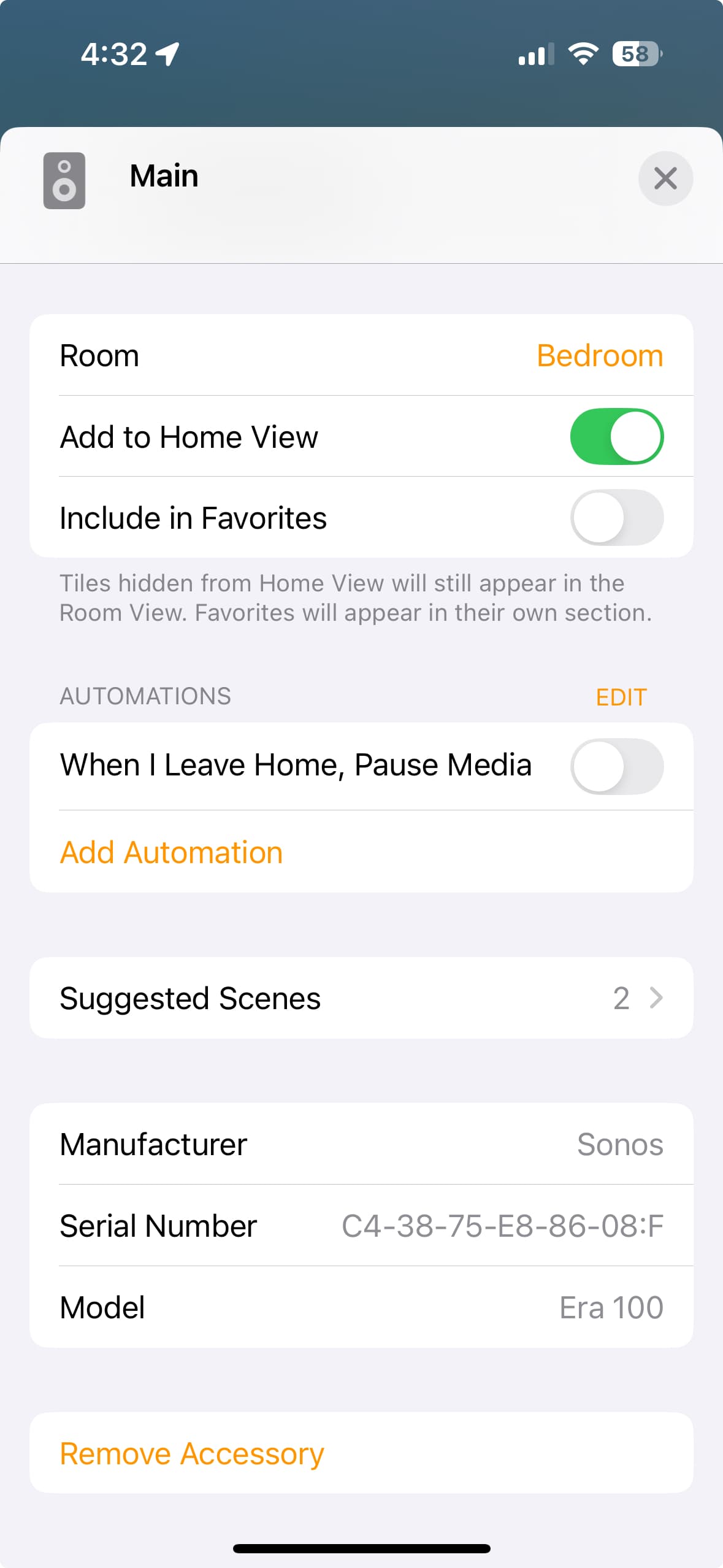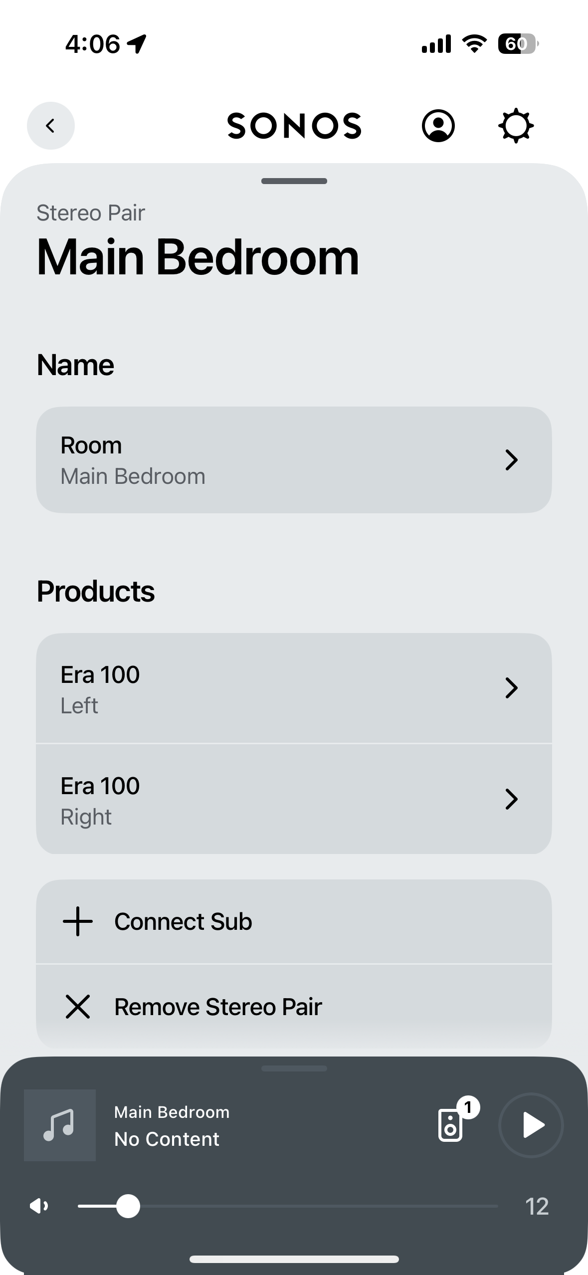 Thank you for the suggestion. I added the era100s to the apple home. It did not fix the issue. Here are some screen shots from my setup. The speakers are grouped as a stereo pair in the sonos menu (see attachment). I am able to cast roon to the sonos era 100s (main bedroom 192.168.1.184) and that works as a stereo pair. But it does not work when the same pair in the apple home. Thank you for your attention to this matter and let me know if there is anything else I can provide to help the community and support engineers.
