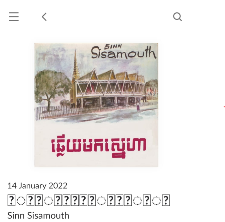 To reproduce this: In Roon Remote (with a Tidal account linked to my Roon account), I access the discography of Cambodian artists such as Sinn Sisamouth or Ros Serey Sothea. All album and song titles are displayed with incoherent question marks instead of Khmer characters.