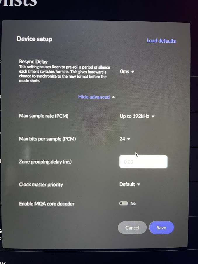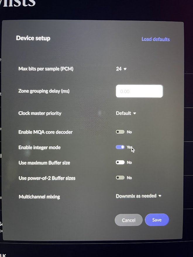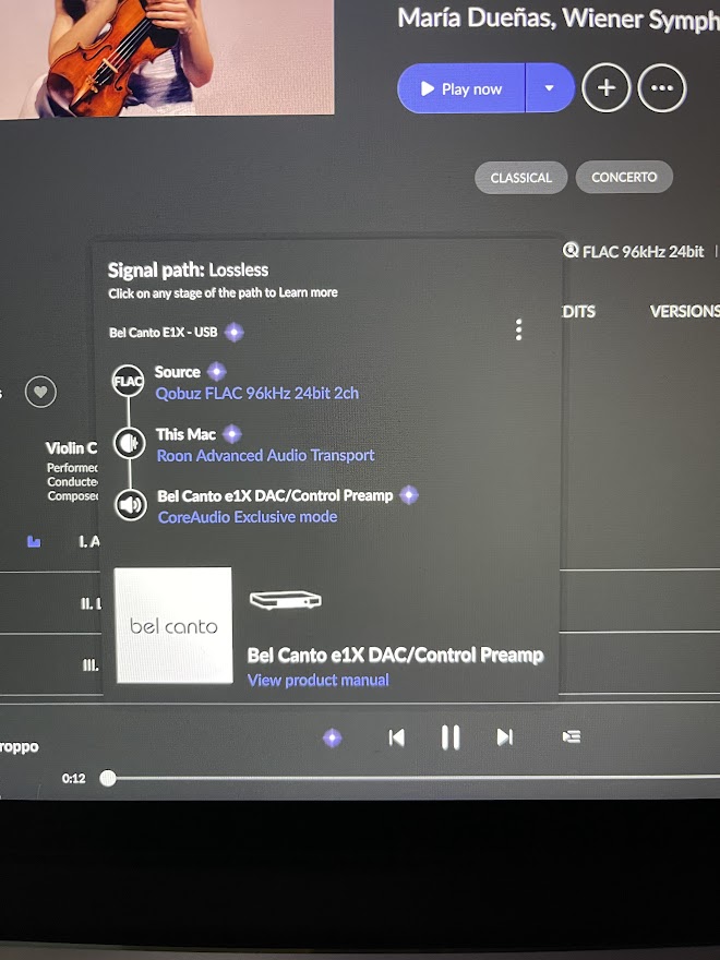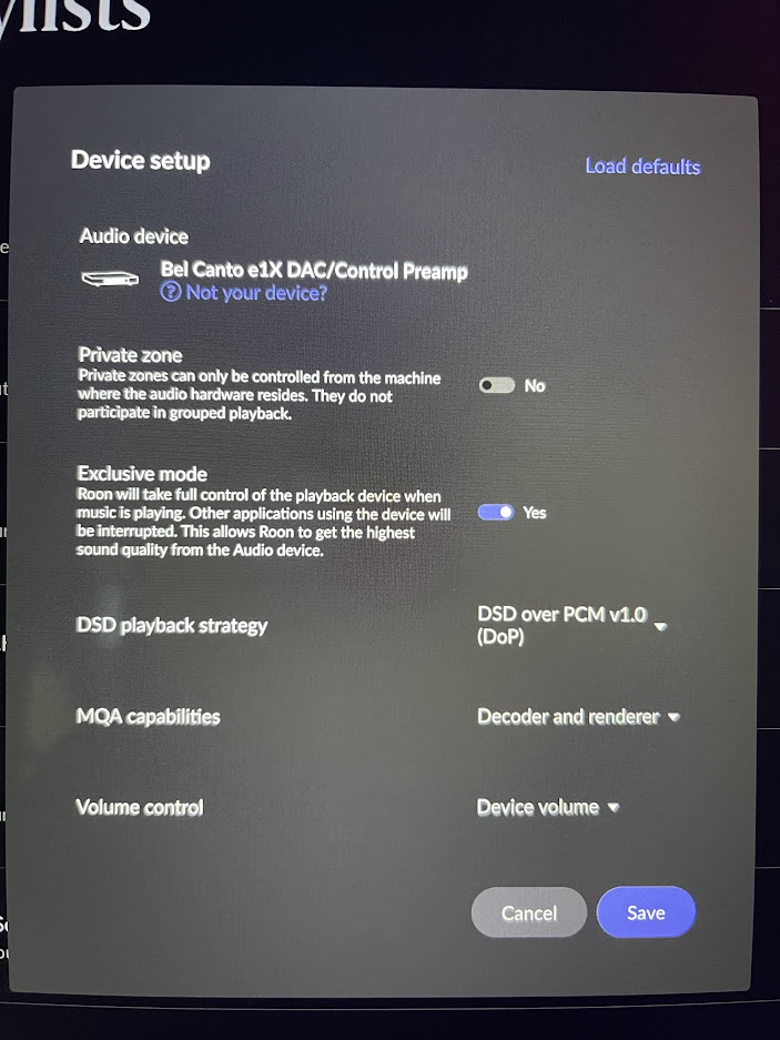 I set the settings of the Bel Canto E1X DAC in Roon as follows.
