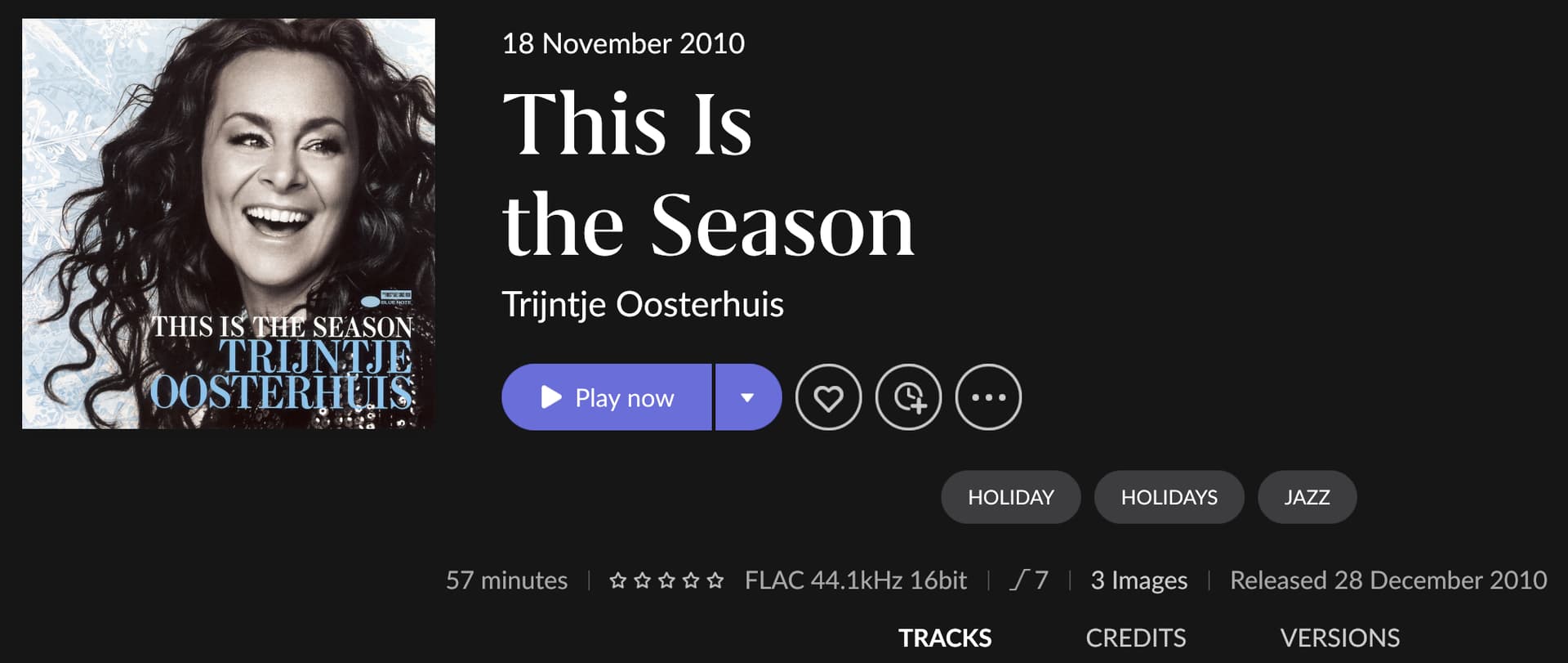 Holiday cheers and good wishes brought to us by the Dutch songstress Trijntje Oosterhuis on her 2010 release “This Is the Season”. Available on Tidal and Qobuz