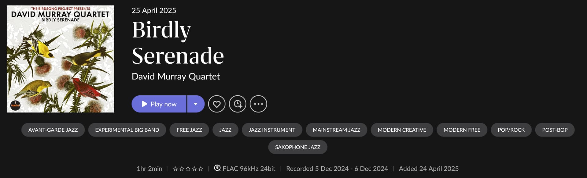 New release, available in high resolution on both Tidal and Qobuz. It’s from the great David Murray so, of course, it’s excellent.