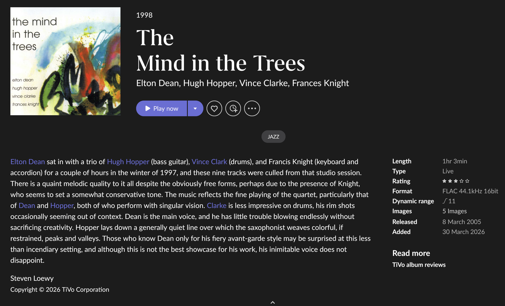 I do like how the bass player comes across on the albums, as I must admit, I do like the sound of the double bass.