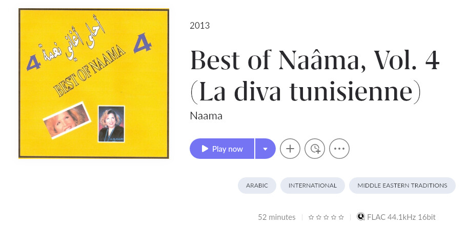 Beautiful voice. Discovered her on some radio station. She is in fact from Israel, Naama, meaning pleasant in Hebrew. The name also exists in Arabic. It seems she is confused with a tunesian singer with the same name.