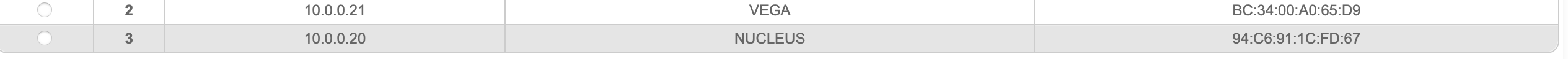 Nucleus is hard wired over Ethernet through CISCO 20 port 1Gbit switch. The Nucleus has fixed IP address of 10,0.0.21 on my LAN