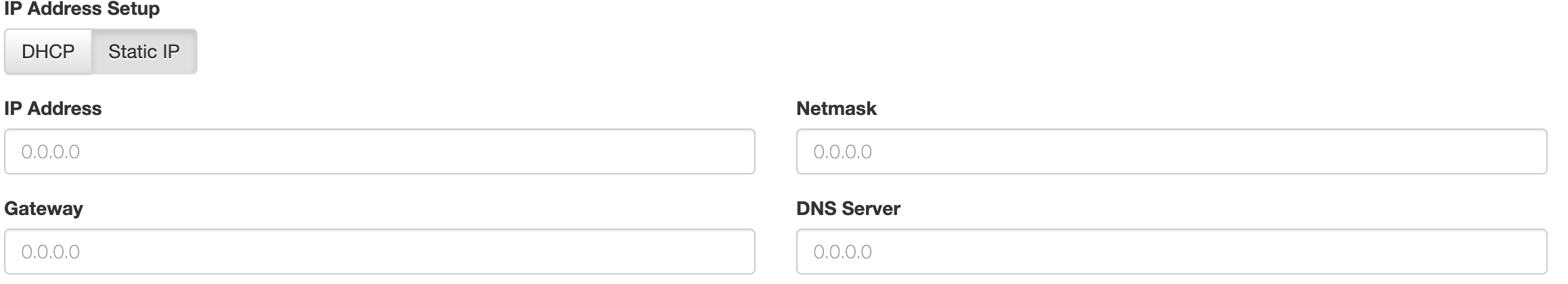 Thanks. I have the DHCP ābuttonā tab selected. If I go to the Static IP tab and clear those settings out and then hit save I get an error message that the fields are invalid. If I click back to DHCP and click save, no errors but the values in the Static IP fields donāt get cleared out. Hope that makes sense. In other words the only way to save after editing the Static IP fields is to select back to DHCP, which resets those fields in the Static IP