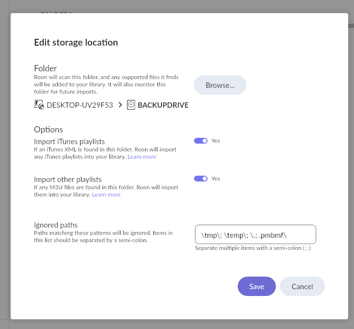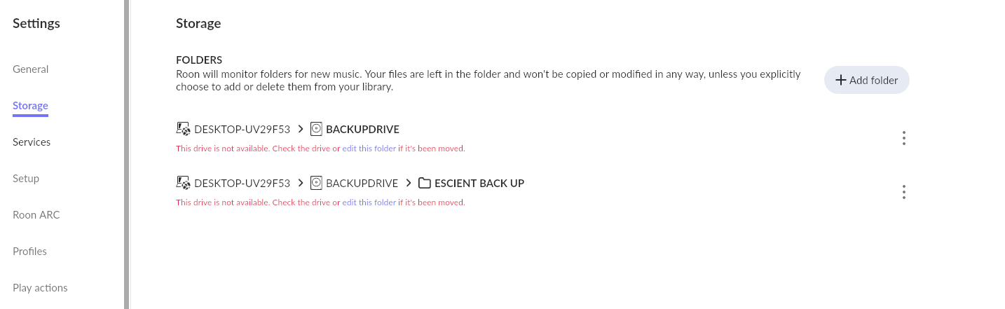 I think the path is still not correct. I’m not able to force a back up. See screen shots. I restored from an old backup that was using the PC as a core but I now have a Nucleus that I want use as the main source. All of my music is stored on a backup drive connected to the PC. See screen shots…