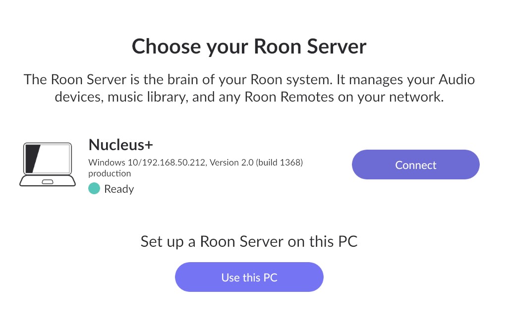 If you are not seeing the Roon Server on your PC in this screen, then make sure that you have started it by, for example, double-clicking the Roon Server shortcut on your PC’s desktop: