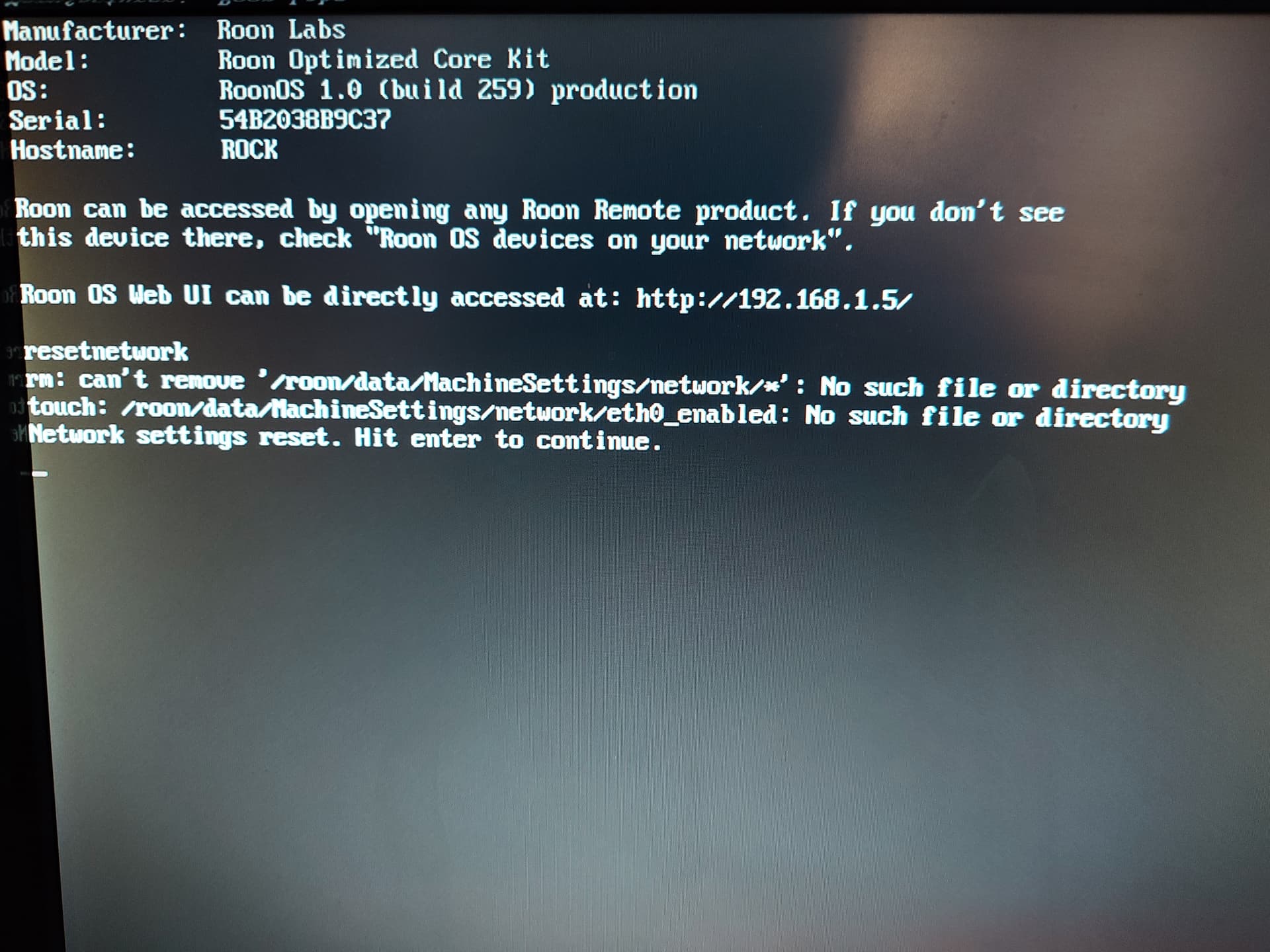 I’ve tried as you said connecting a monitor and a keyboard directly to the Nucleus device, but when I tried to enter the resetnetwork command the system replied as per attached pic, not leading me to a new IP address but with the same old one which it still gives me a not valid website