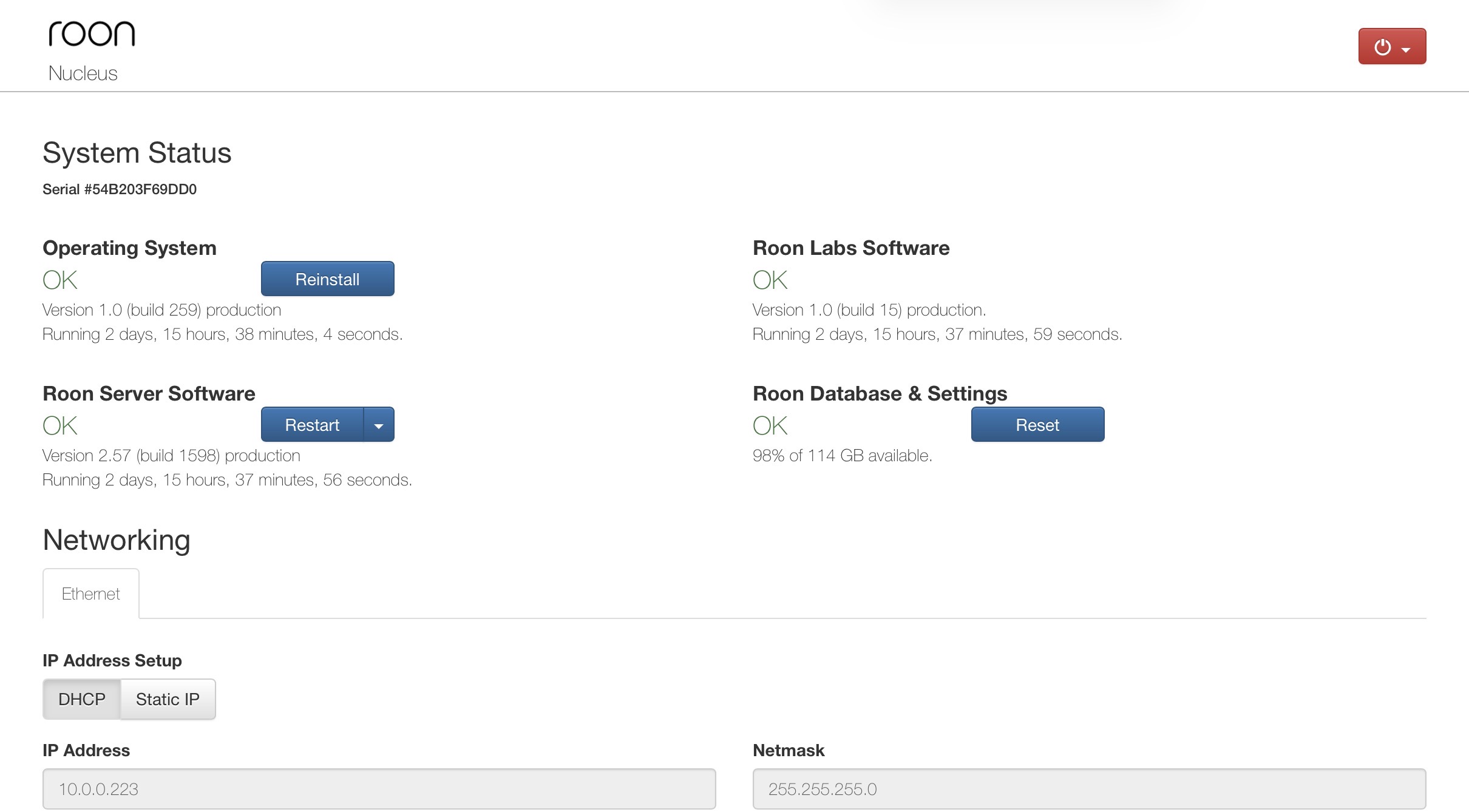 · Xfinity internet. Nucleus with HDMI to Bluesound Powernode 2. Wifi to Nucleus. Server at 10.0.0.223