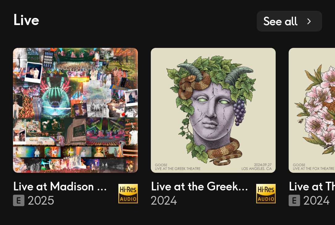 Nugs is a fairly niche offering. If you’re into live music, particularly jam bands, it’s an incredible value. My favorite band, Goose, livestreams all their concerts on Nugs, and releases the master recordings there as well. I also have my own collection of purchased liveshows. STS9, for example, only releases a selection of their live shows on Nugs, so I purchase some of them on Bandcamp. Now I can have all of that music in one place!