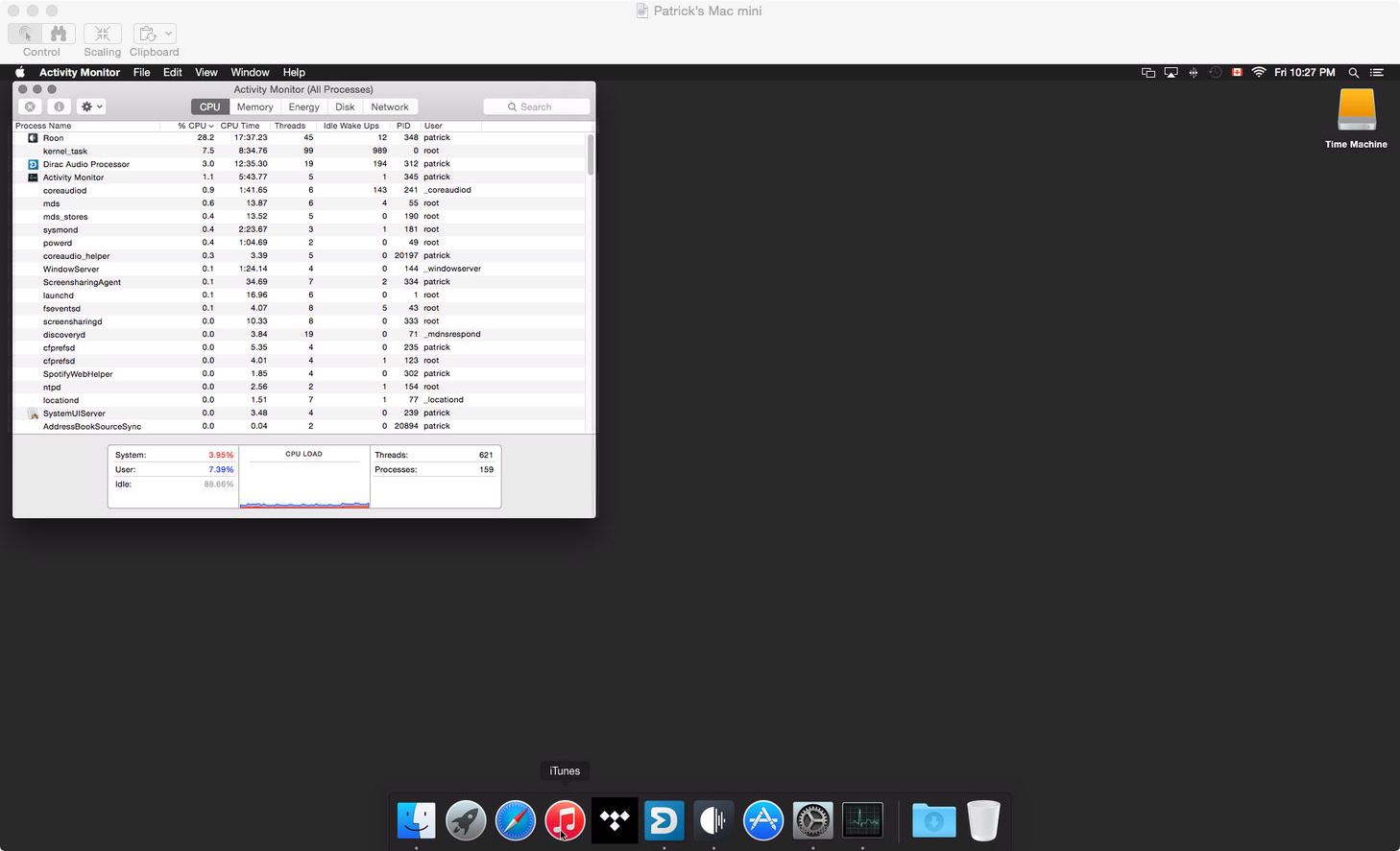 This is what the Activity Monitor looks like streaming a lossless TIDAL stream with Roon minimized to the dock: