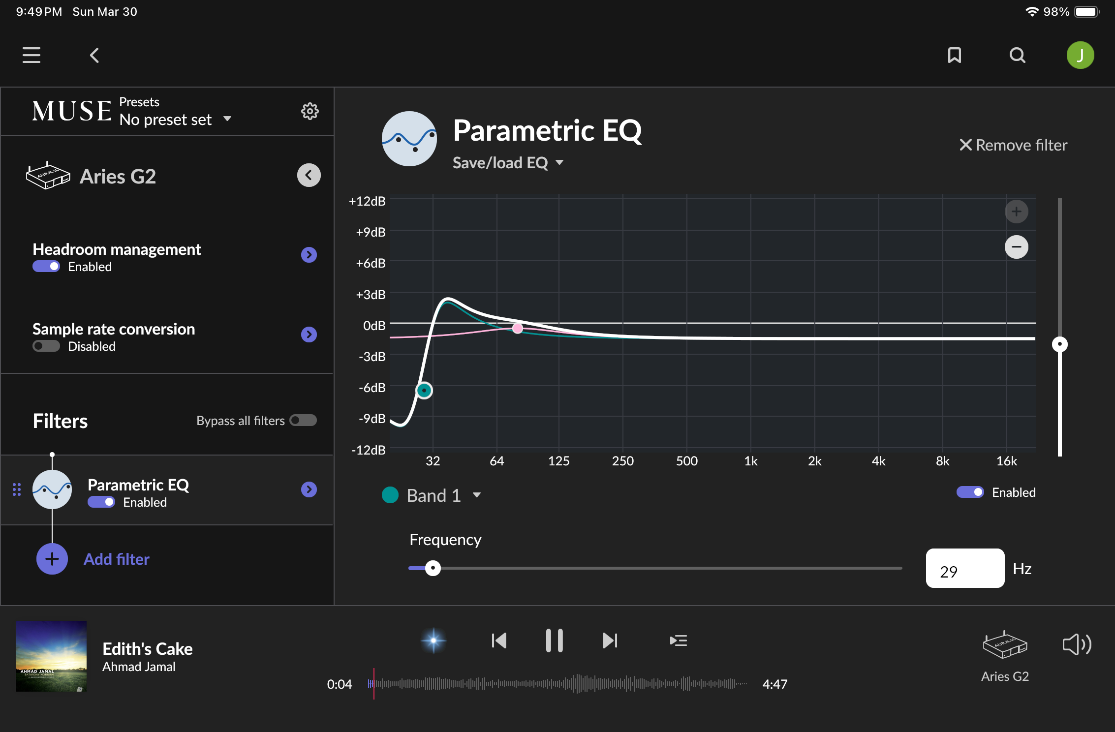 Thanks @Arindal I was messing around with a slight bottom end boost to make things more enjoyable at lower volumes. Used your low shelf settings at 29hz along with a second band 1db boost at 80hz and 1 Q.