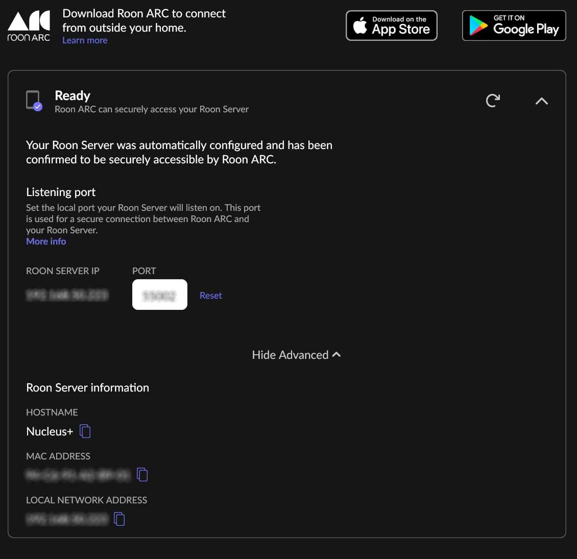 If the Settings → ARC page lists a “Ready” status, then RoonServer can send/receive secure Roon traffic through the open port. This means ARC shouldn’t have an issue on cellular data unless your cellular provider is filtering downstream traffic (very rare).