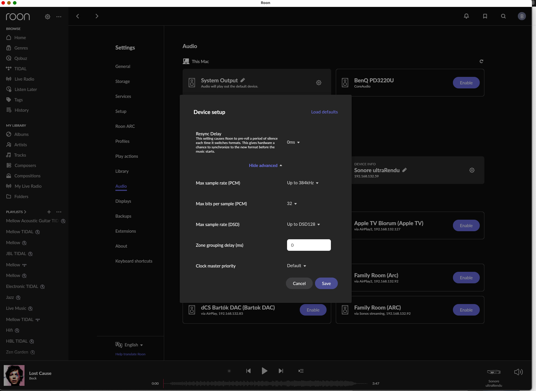 Trace: [System Output + dCS Bartok] [zoneplayer/raat] too many dropouts. stopping stream