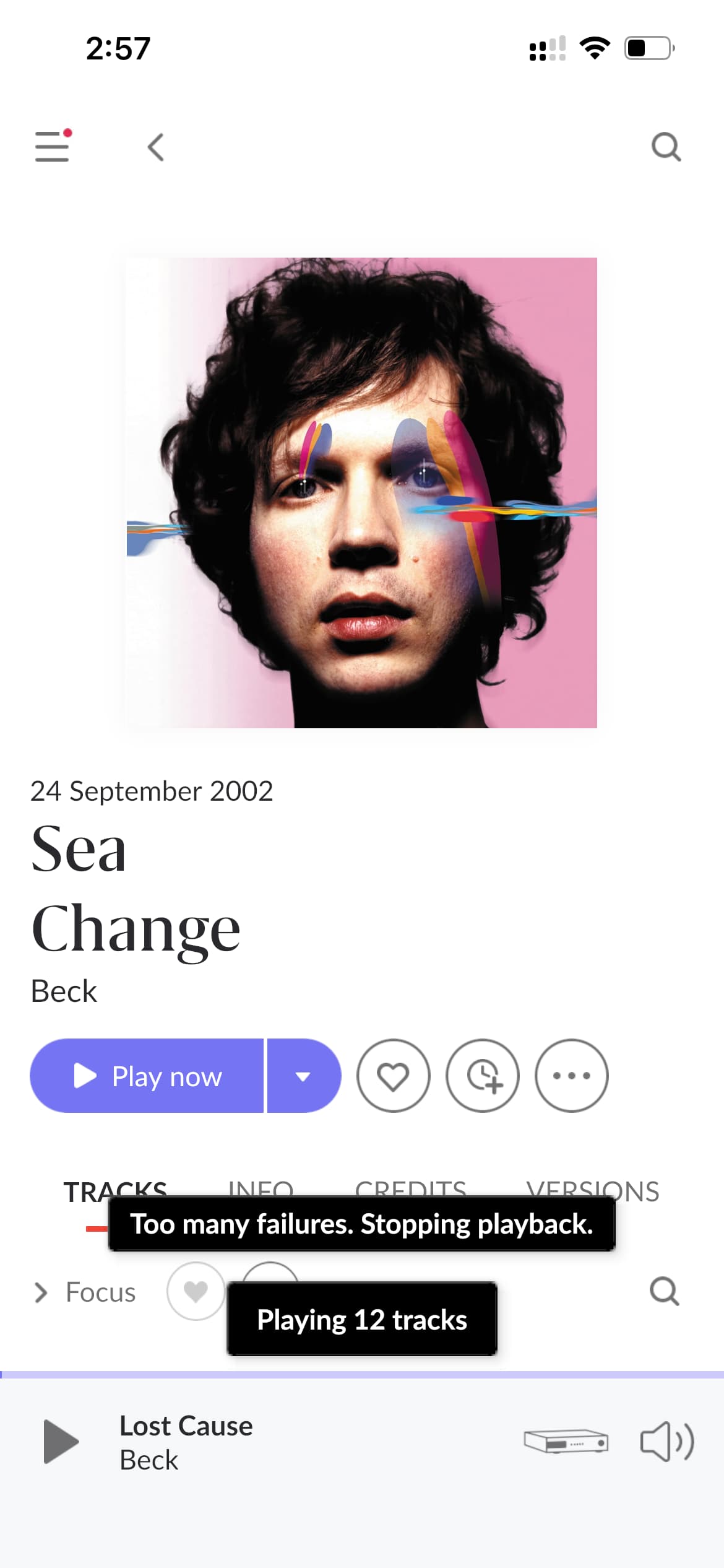 Does the issue happen with local library music, streaming service music, or both?