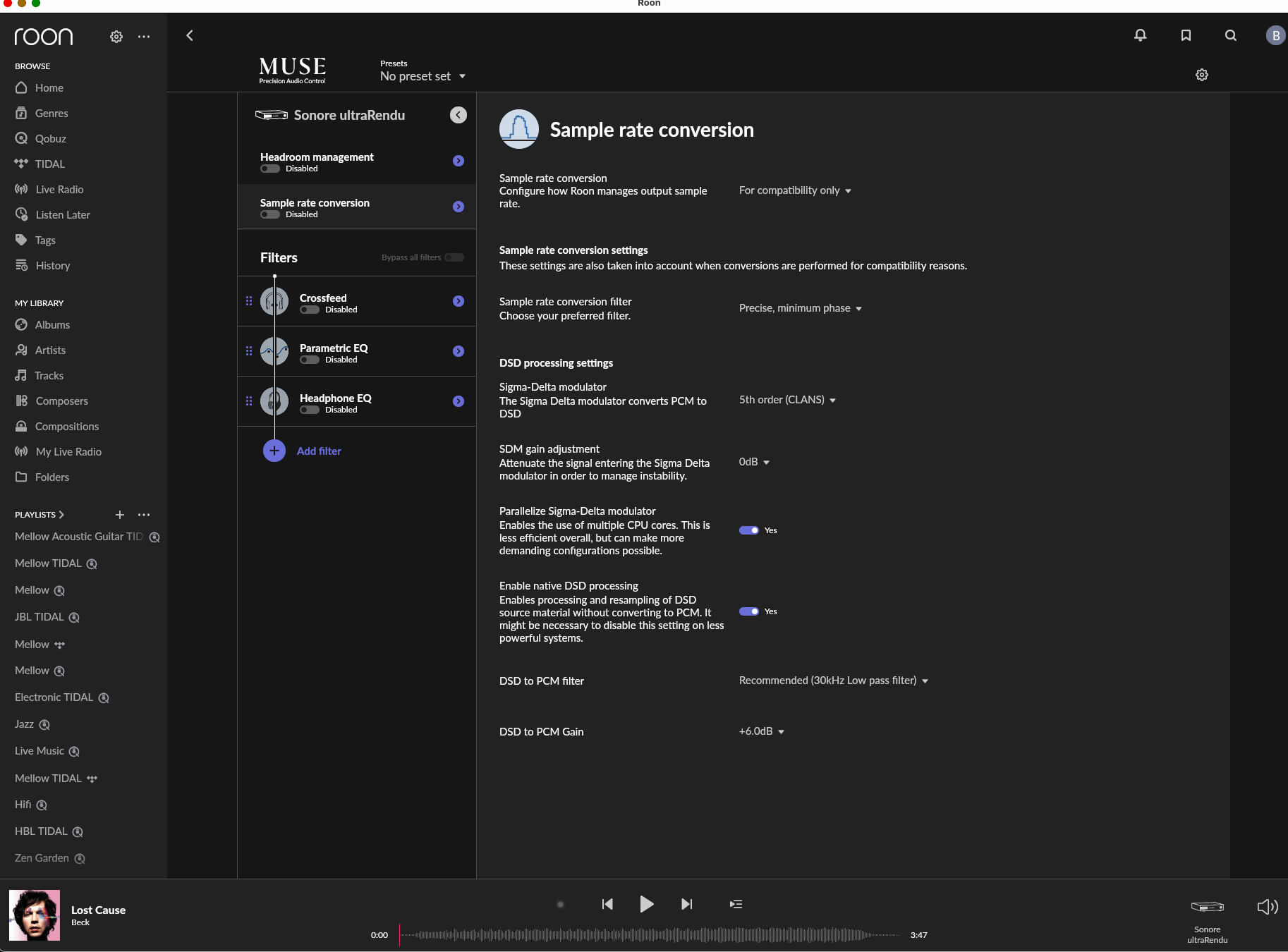 Trace: [System Output] [HighQuality 66.1x, 24/96 TIDAL FLAC => 24/48] [PLAYING @ 4:35/4:37] Prince Johnny - St. Vincent