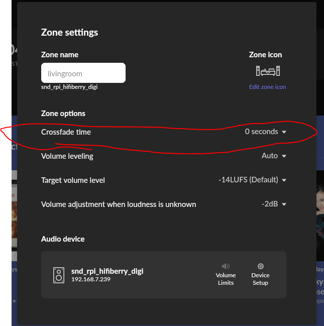 There is a “Crossfade time” that can be set under the “zone Settings” for each zone.