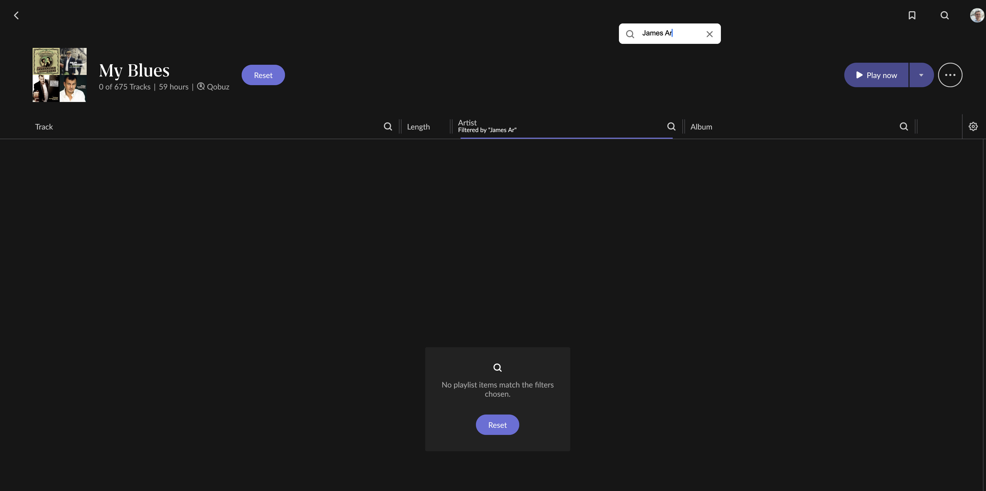 · I have an issue when searching for an artist within a playlist: When I type a name such as Philipp Fankhauser, the search works at first, but as soon as I enter a letter after hitting the space (after the first name), the result becomes empty. Hence, after pressing the space bar, no results are shown anymore. However, searching the same way in the Artists section (with space bar) works as expected.