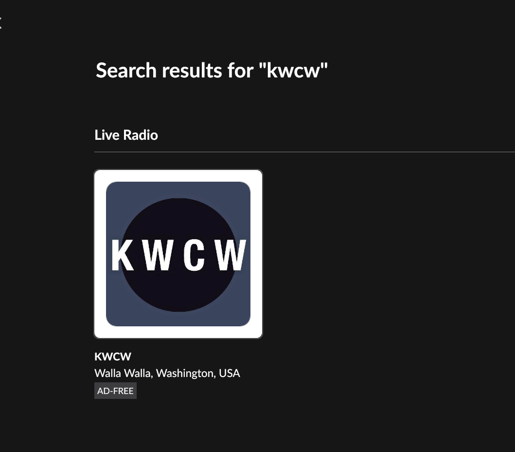 KWCW doesn’t come up on a Roon radio search. Does it need time to refresh?