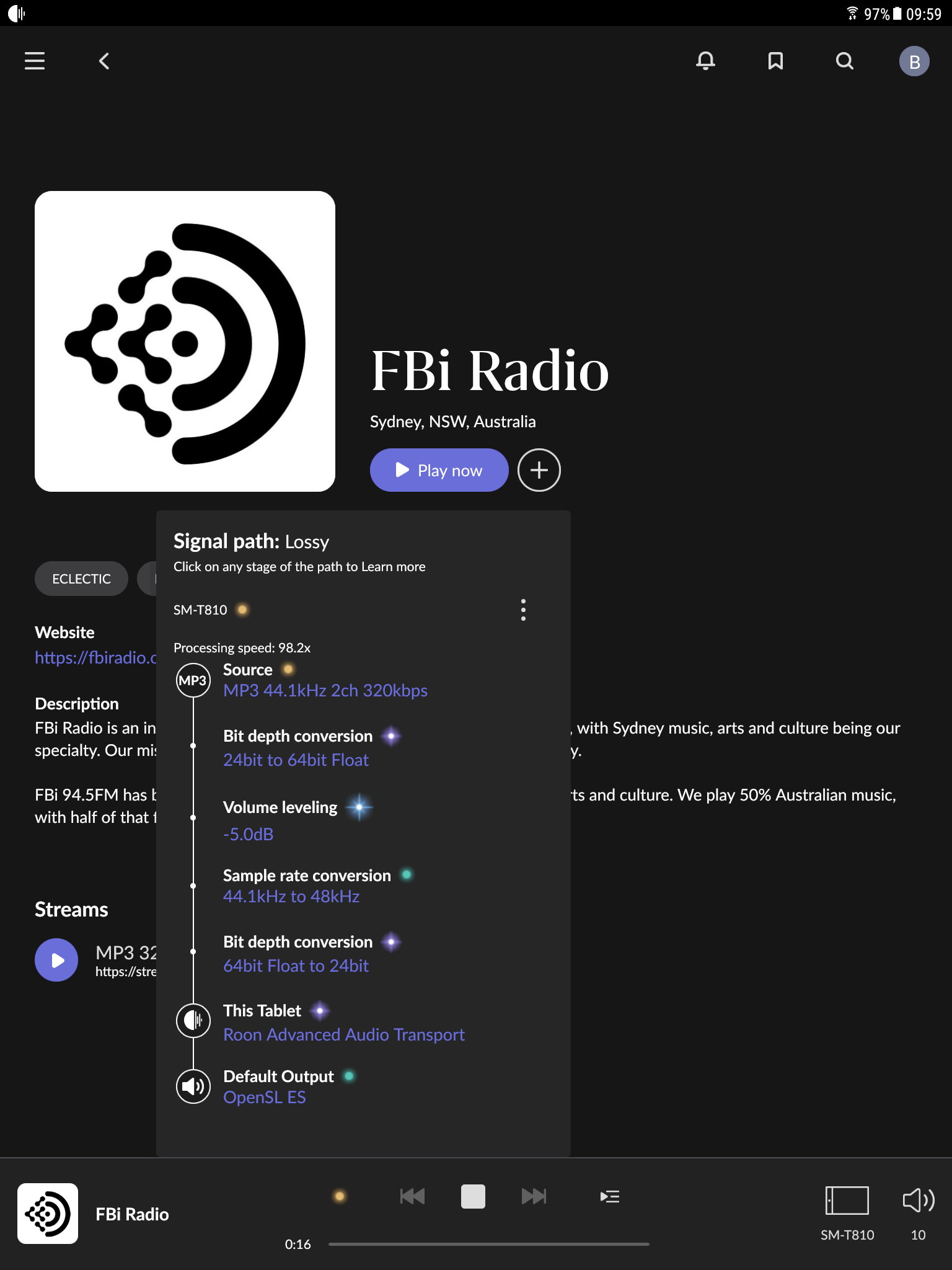 (Annoyingly, I found a high quality stereo stream - but Roon fails on it - Iāll inform the Devs about that)