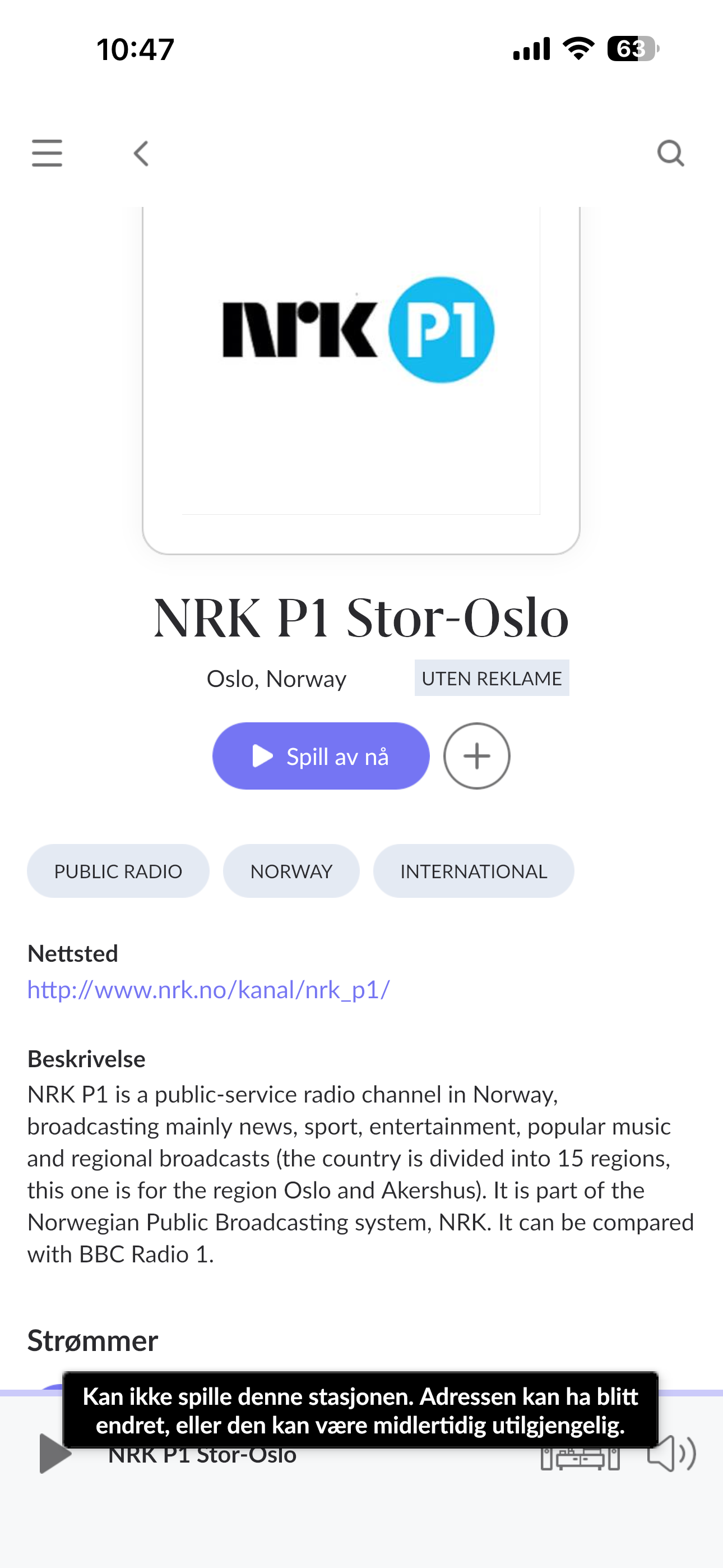 Hmm, NRK P1 Stor-Oslo works fine for me.