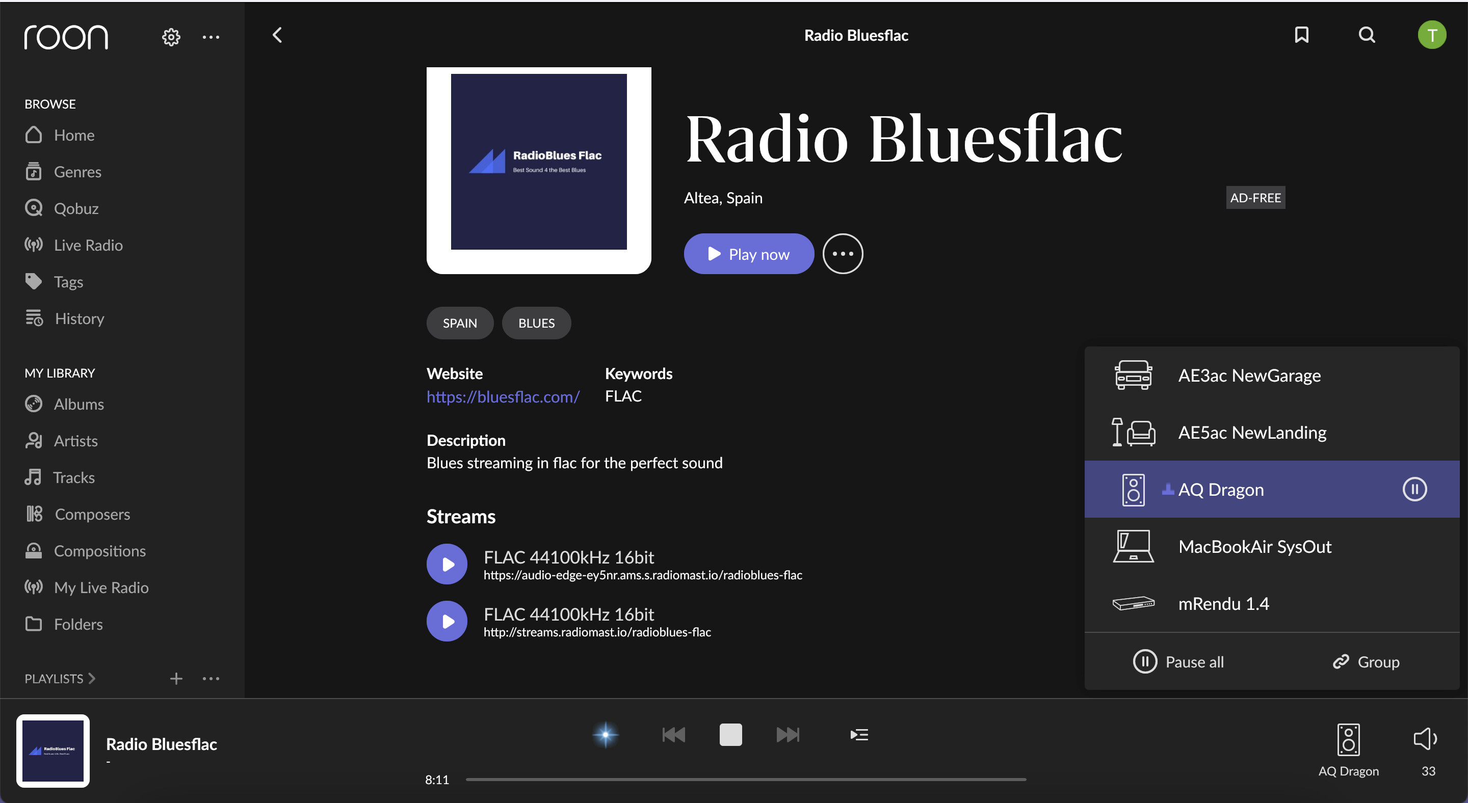 Iām having trouble with one of my favorite Live Radio streams: Radio Bluesflac Altea, Spain.