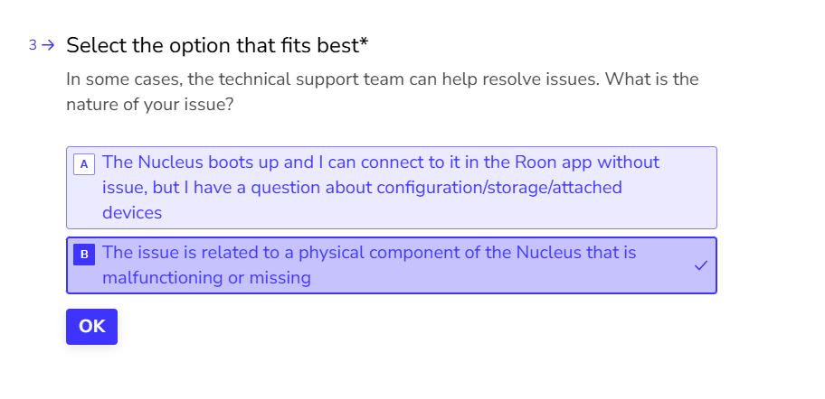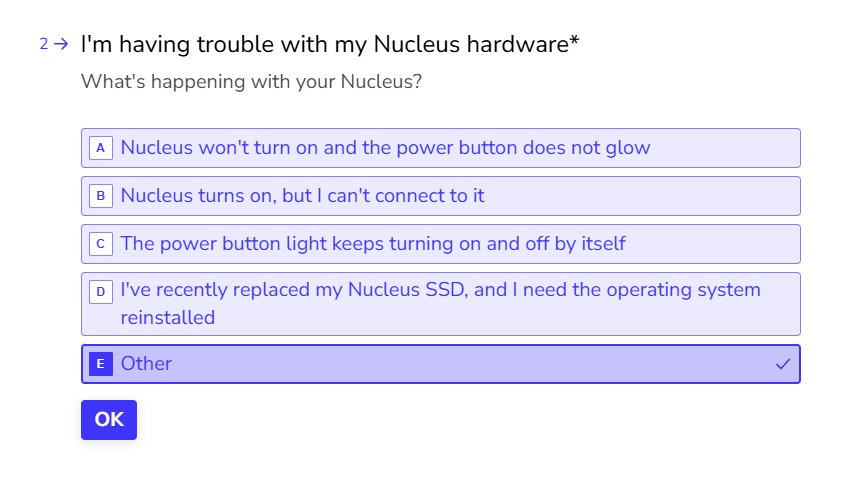 In using the Typeform system you’ve raised a support request for assistance from the Support Team. You should have taken a different route through the system to raise an RMA request to get your Nucleus One replaced. For example: