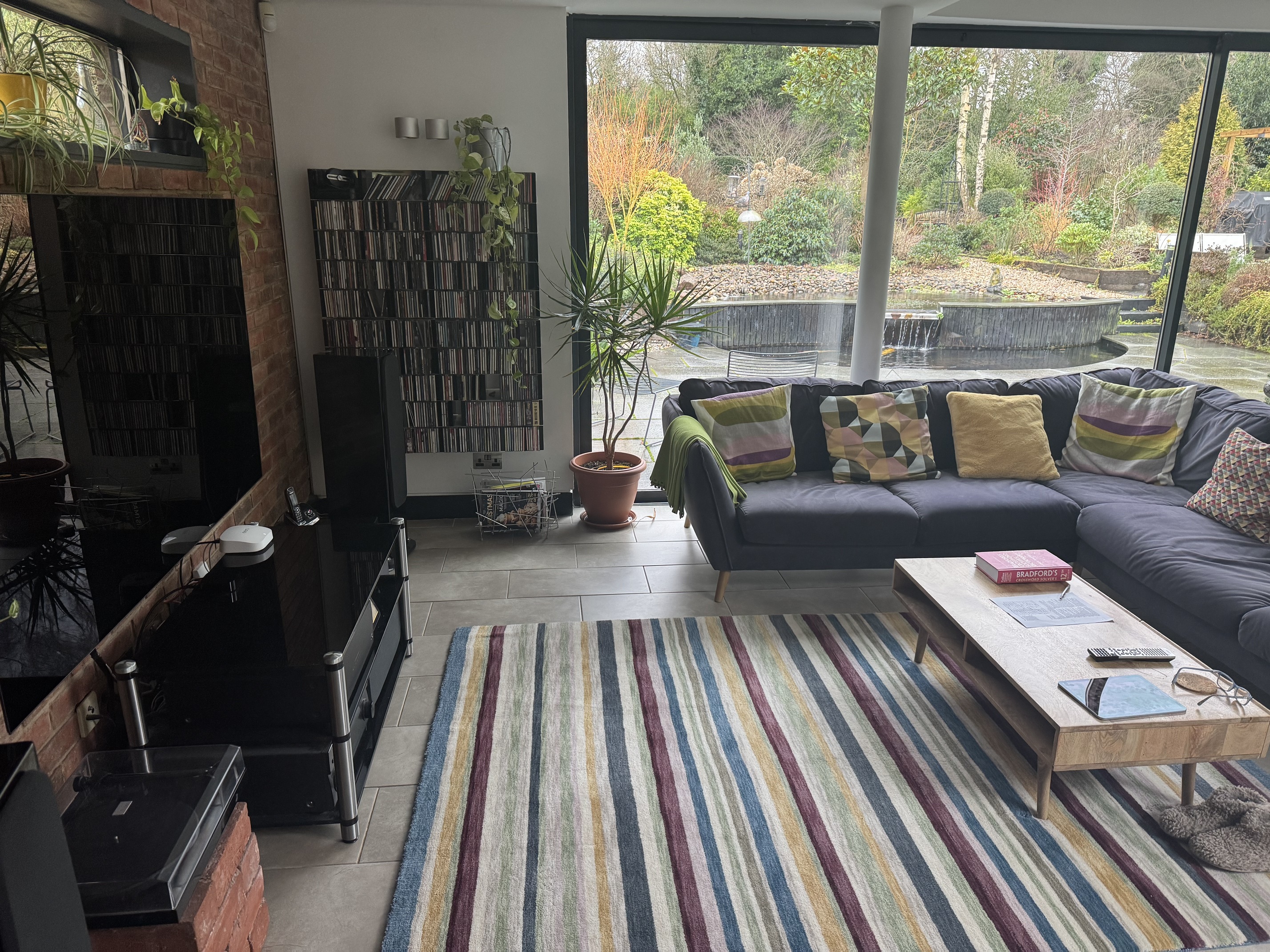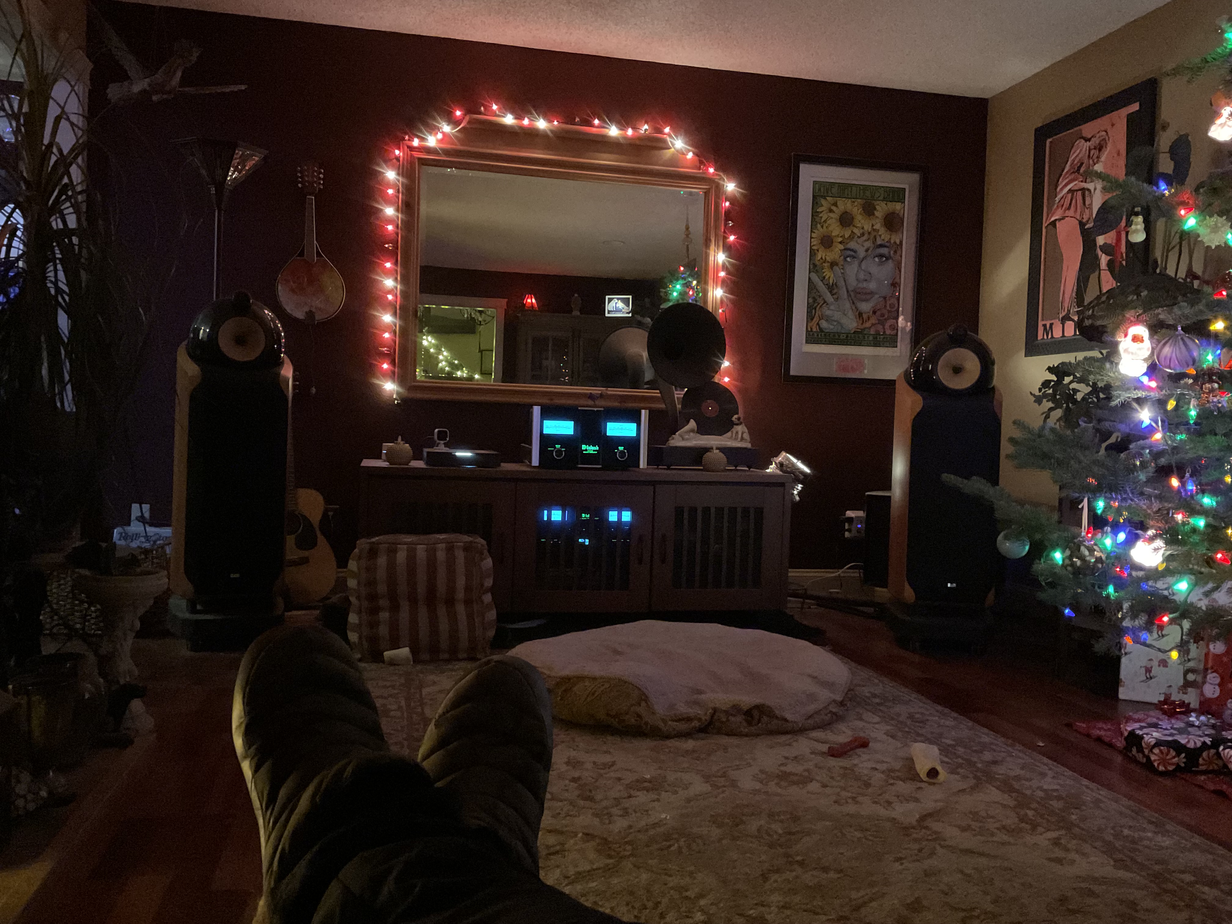 Some great places to listen here! New place for me - Roon is coming in over powerline ethernet adapter through Wiim pro plus into tape input of newly refurbished Marantz 2230. The space is very lively and the little Mark Audio drivers in the 1-liter cabinets are very fast.