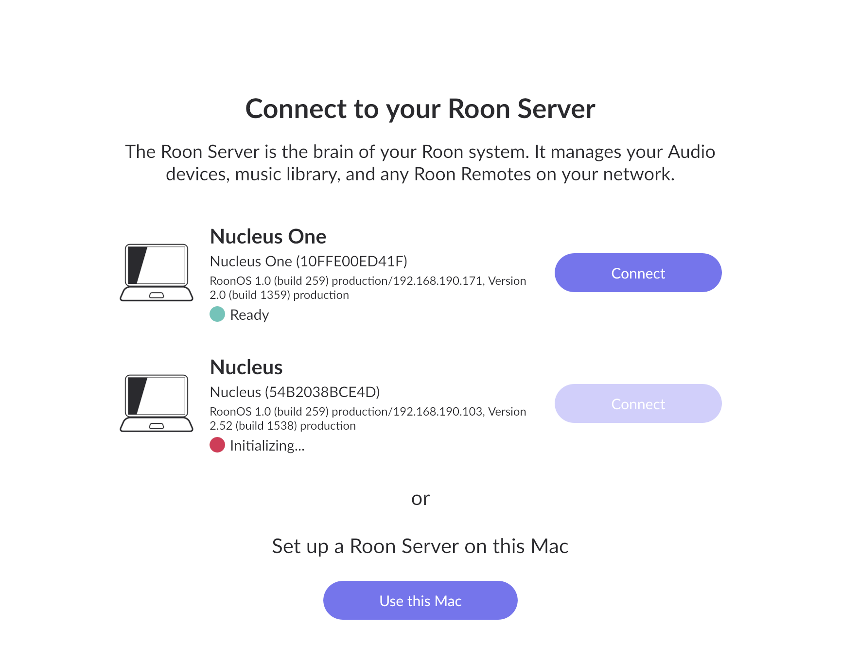 I am having a number problems over the last couple of day, between getting server issues and constant playback interruptions, and Roon screen redraw. Storage notifications. Please see screen shot below could my Nucleus be F&*ked? I am running Mac OS 15.5. I know I have a Nucleus One as well, I don’t want to swop to that being the server, as I need to know whether it’s the Nucleus or software conflict. Swopping to the N/One may indicate whether it is a software issues. but I dont want to keep resetting it. It get it the server back for about 30 sec, intermittently and then all the issues start again,.