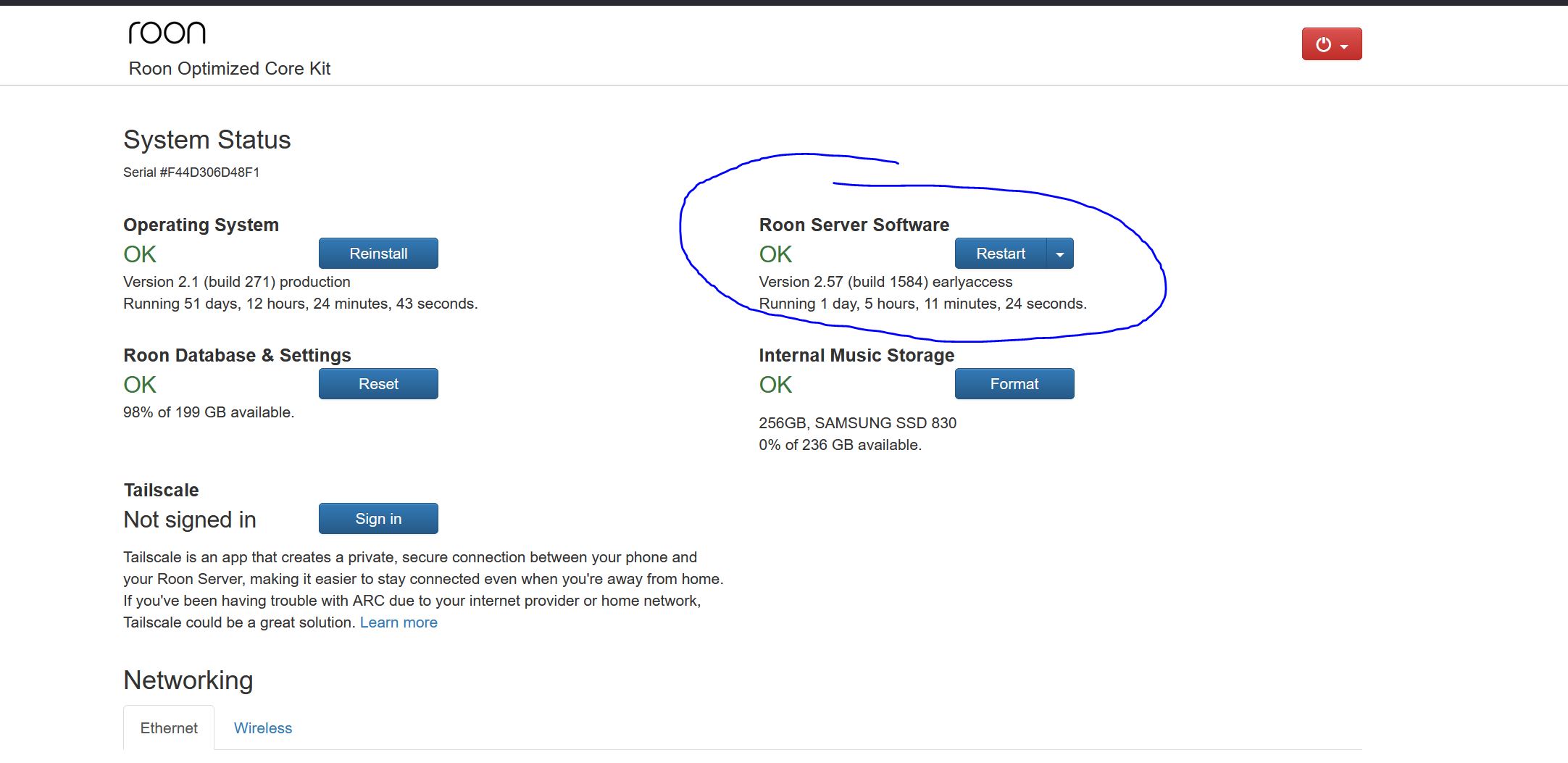 Thank you for the quick reply, Daniel. Now I think I understand the confusion. I never installed the CODECs because I didn’t think I needed them but now I think that even if they are not needed to enable my DACs, I need them to enable all the server options. I’m going to follow the instructions to install the ffmpeg file and see if my screen has the restart option your screenshot shows.